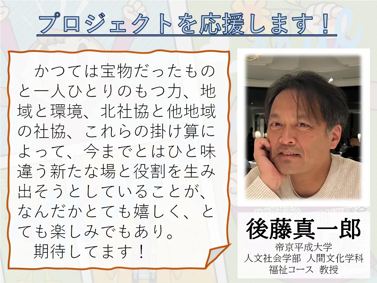 帝京平成大学の後藤真一郎教授より、私たちの取り組みに心強い応援メッセージをいただきましたので、ご紹介します。