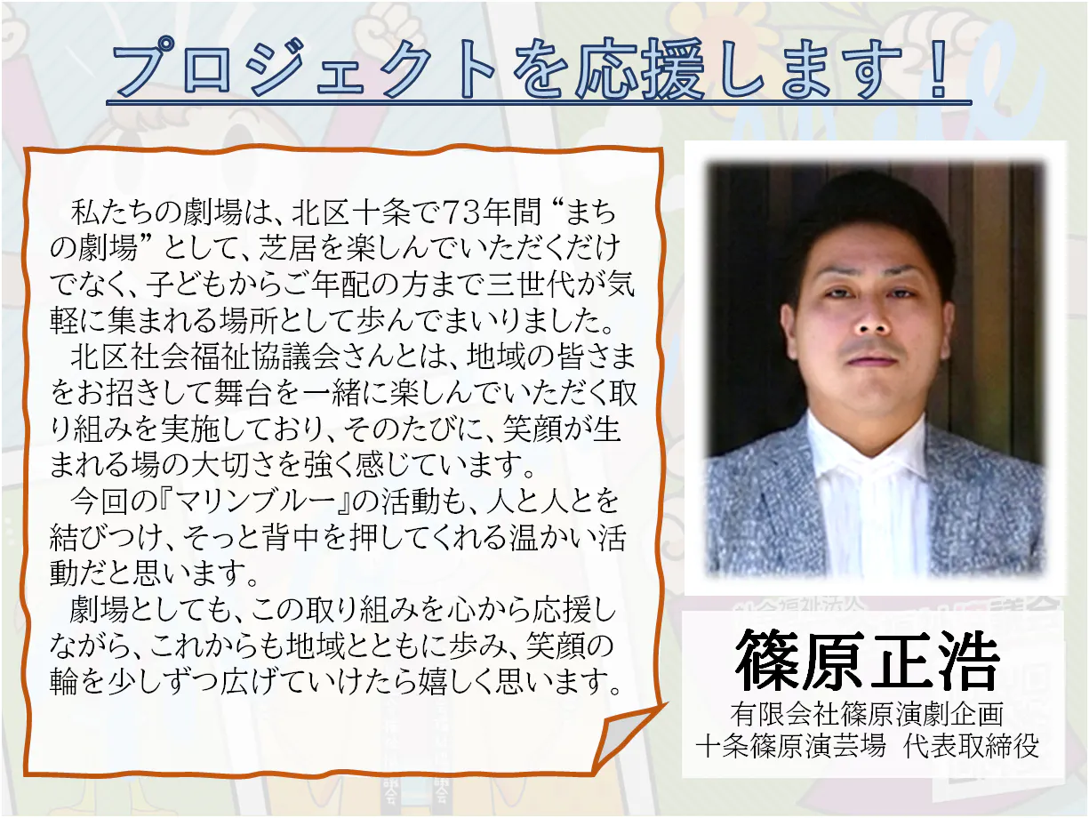 代表取締役の篠原様より、マリンブルーの活動に対する温かい応援メッセージを頂戴しました!