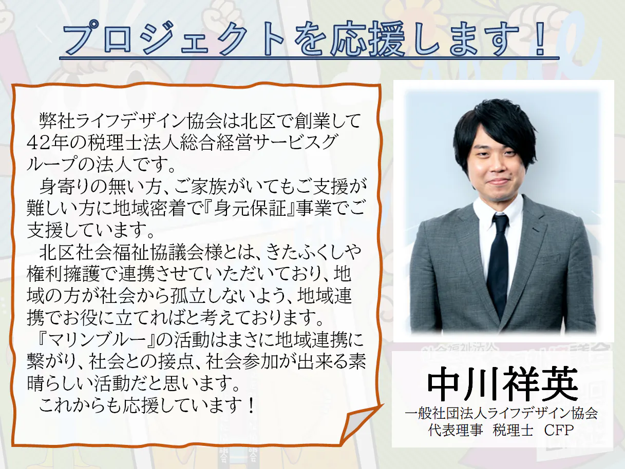 >以下、一般社団法人ライフデザイン協会・中川様からの応援メッセージは以下のとおりです。<