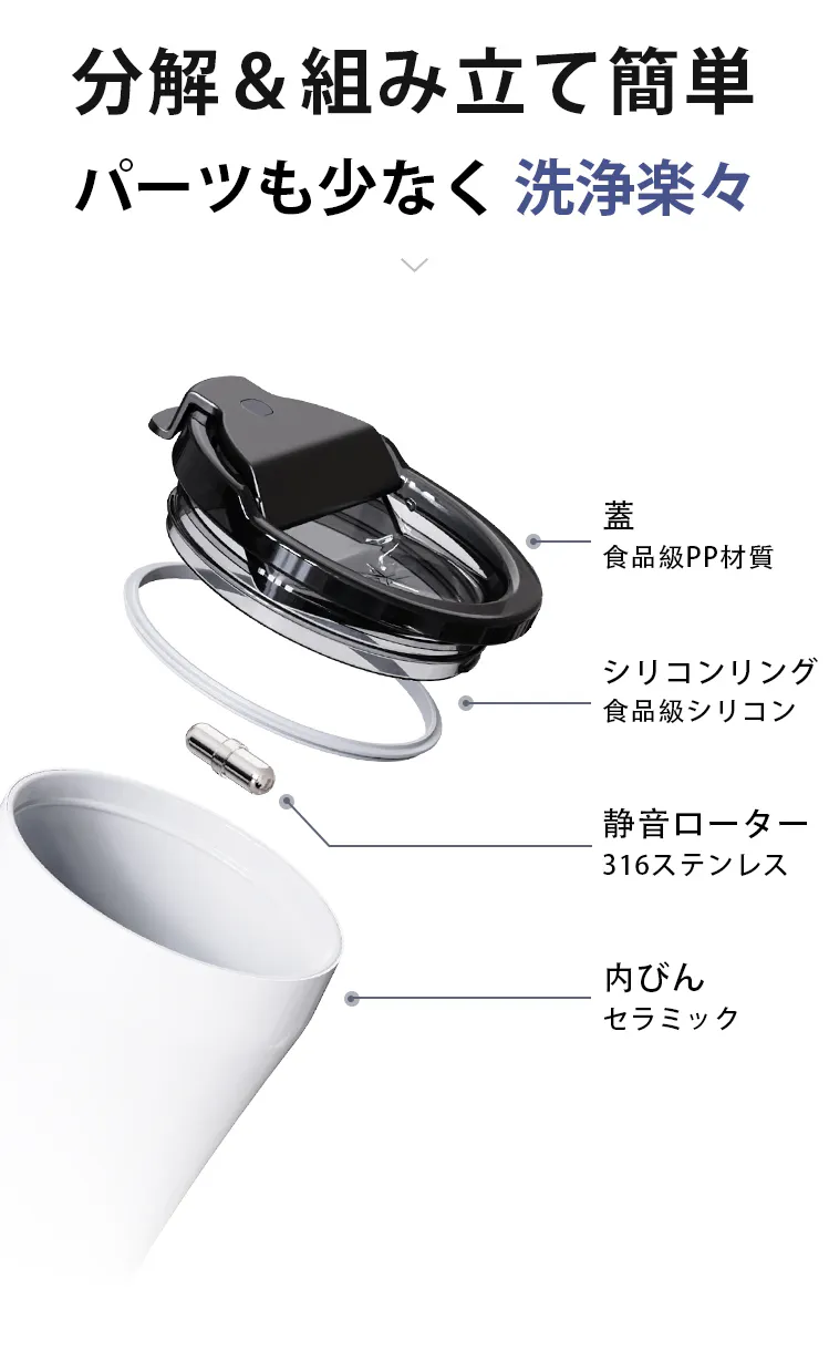パーツも少なく、分解や組み立ての手間も最小限。忙しい朝でも手軽に清潔を保て、いつでも安心してドリンクを楽しめます。