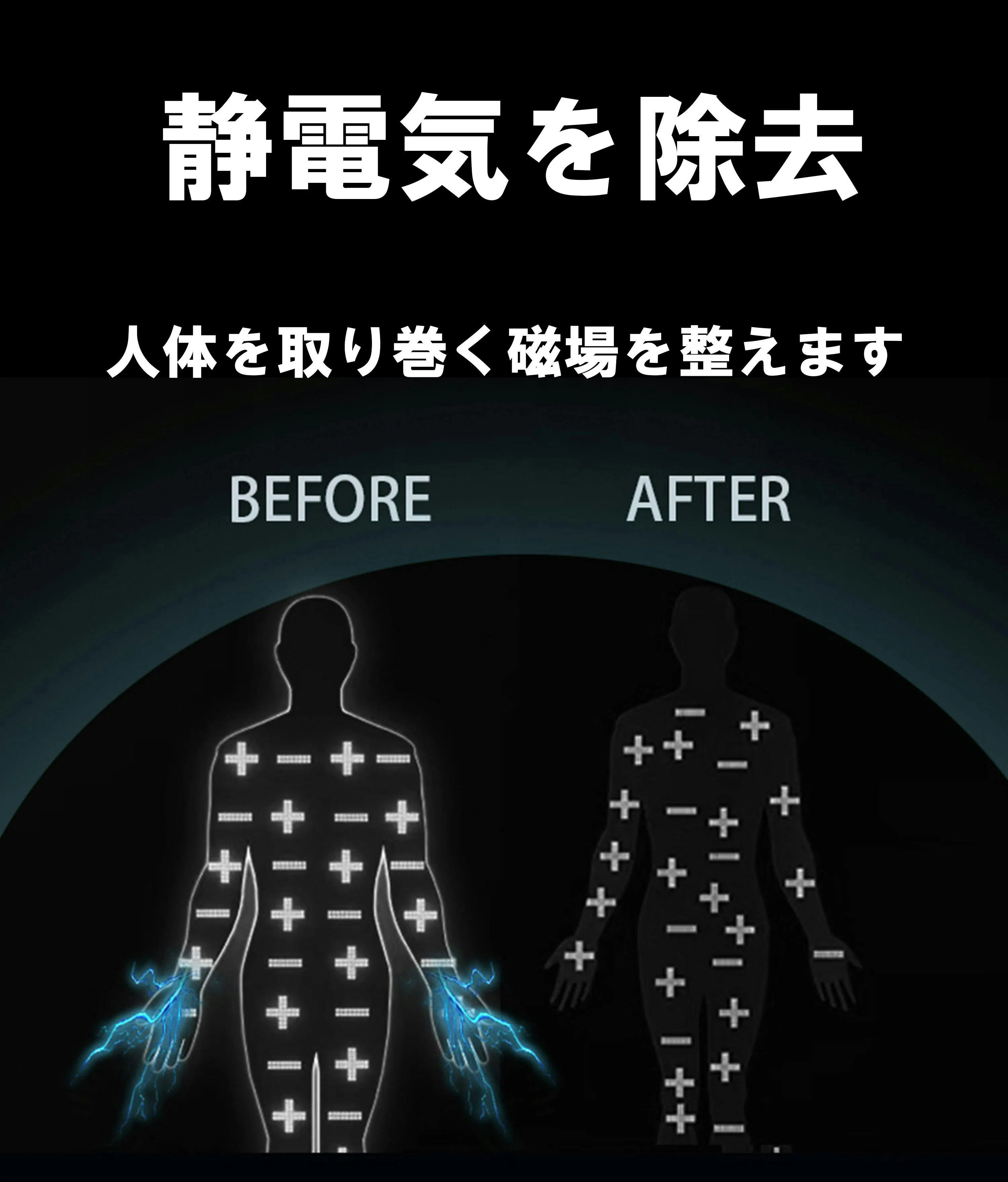 当静電気除去バンドは、高性能AI電極チップを肌に密着させ、静電気を吸収して特殊な技術加工を施した光源点に放出することで放電を吸収し、空気中に放電することで、完全に静電気を除去します。