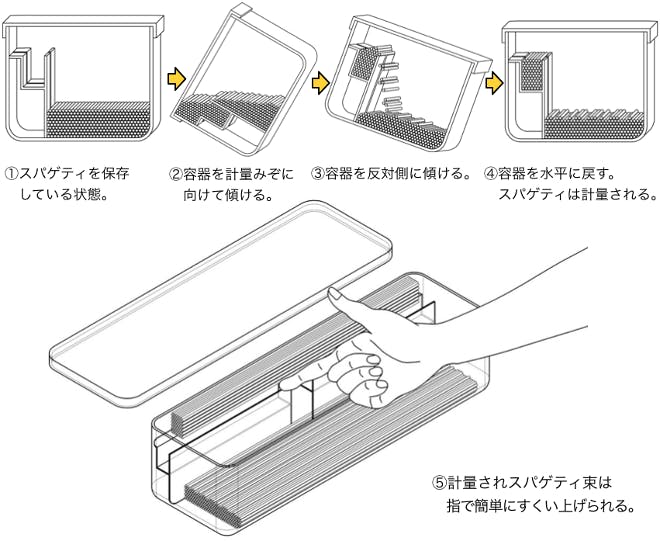 このような構造から、だれでも簡単・正確にスパゲティを計量できます。