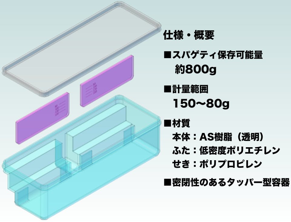 この製品の考案のきっかけは、スパゲティ料理を自分で作るようになったことです。