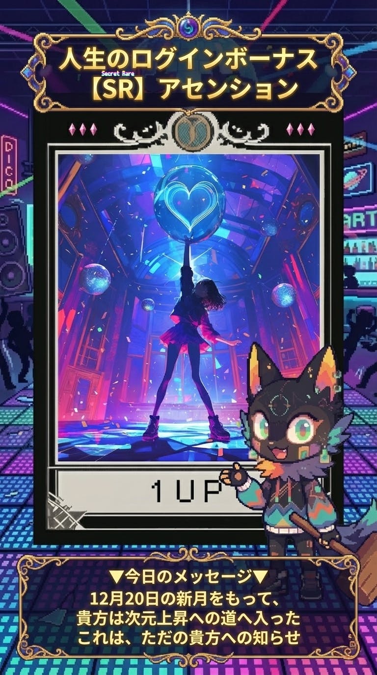 12月20日の新月を境に、皆様の魂(アカウント)は再定義(リブート)され、新たな次元へと進みます。 「これまでの自分」を経験値として、新しいクエストへ挑む準備はいいですか?