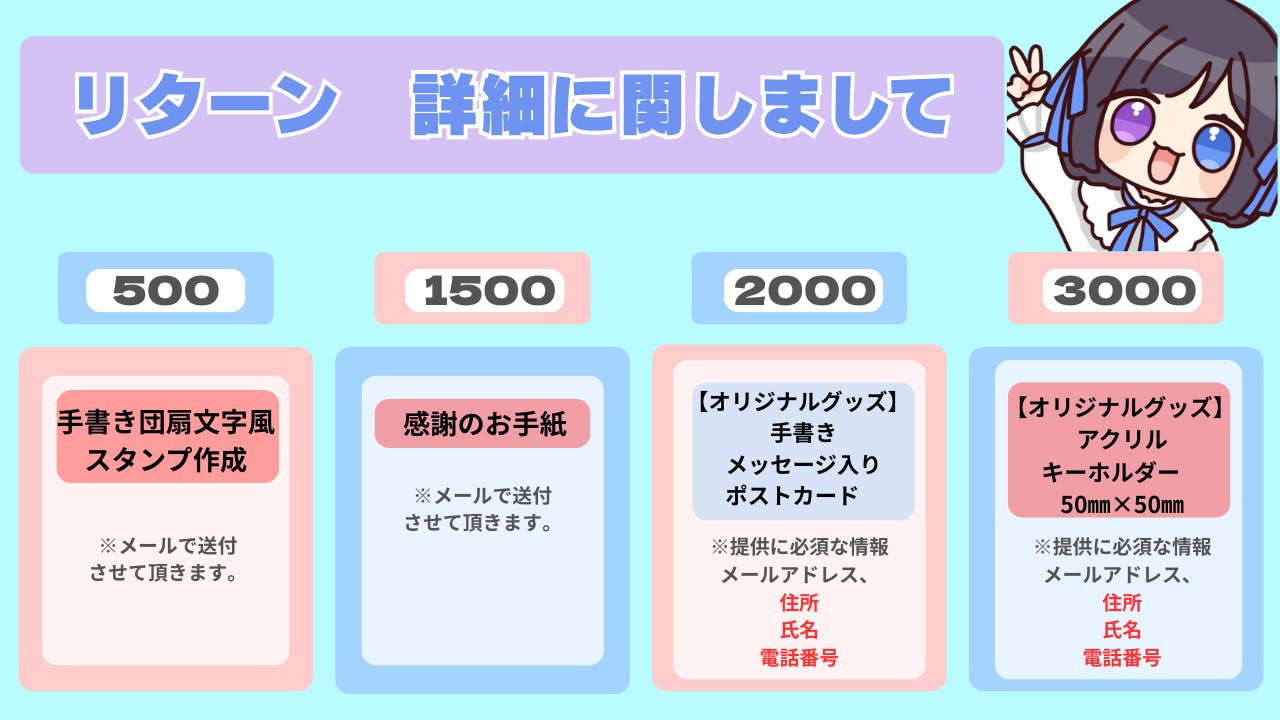 ※ オリジナルグッズの提供に関しまして 支援者の方に入力必須となるものがございます。