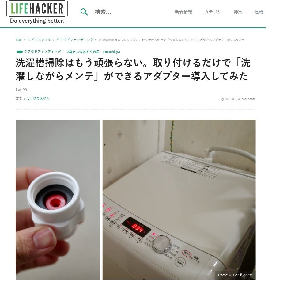 皆様いつもご支援ありがとうございます。この度、Lifehacker Japan(ライフハッカー)様に2回目の記事としてコスモバブをご紹介いただきました。取り付けの手軽さや、洗濯しながら洗濯槽のケアができる点などを丁寧に紹介していただいています。▼掲載記事https://www.lifehacker.jp/article/machi-ya-cosmobub-review2-897753/また、ご支援は現在まもなく400名に届こうとしています。ここまで応援いただき、本当にありがとうございます。本プロジェクトは1月25日で終了となります。最後までどうぞよろしくお願いいたします。