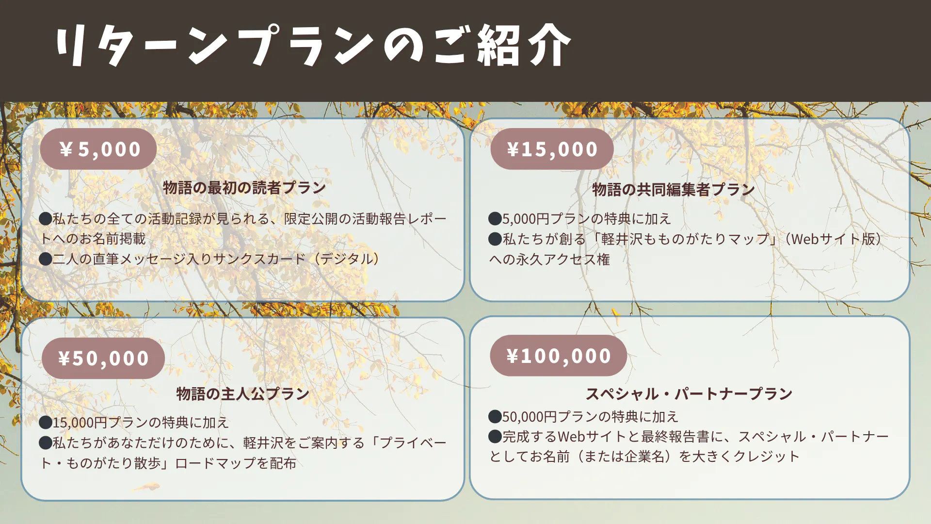 あなたの支援は、未来の軽井沢を一緒に描くための小さな一歩です。どうか、この物語にあなたの想いを重ねてください。