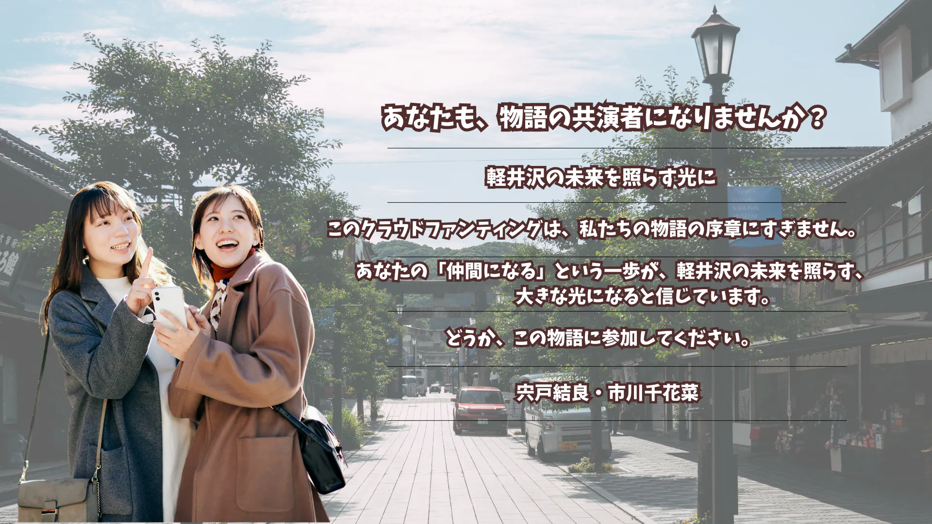 このプロジェクトは、私たち二人だけでは完成しません。あなたが関わってくれることで、軽井沢の“本当の姿”が少しずつ形になります。