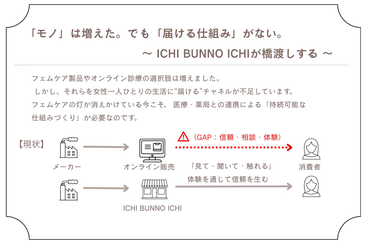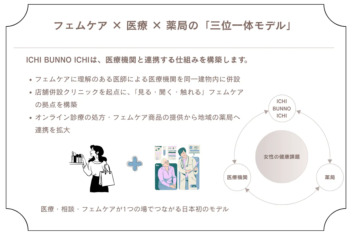 フェムテック製品を扱うお店ICHI BUNNO ICHIが、クリニックと連携してしてそんな「当たり前」を作ろうという挑戦は、これまでの医療の在り方に新しい風を吹き込みます。