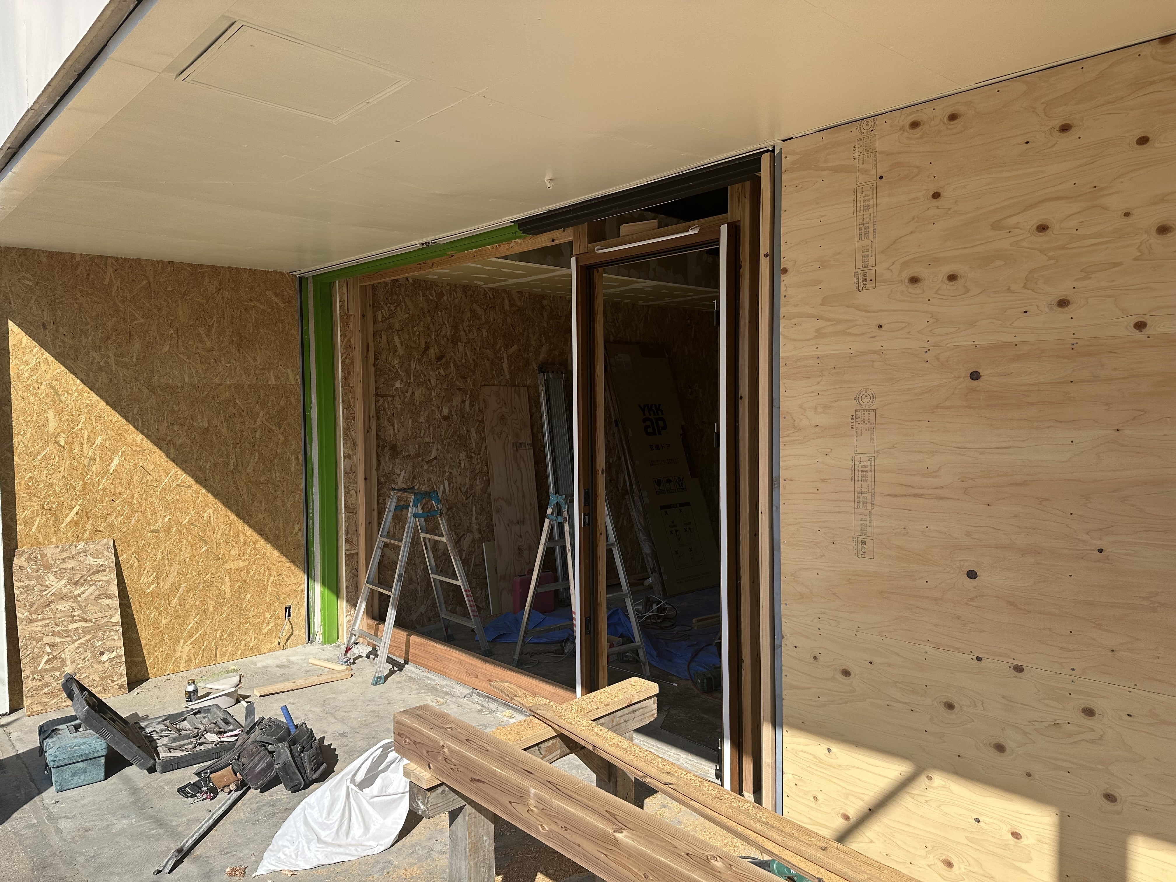 まだ骨組みの状態ですが、ここから扉や外観の仕上げが加わり、皆さんをお迎えする入口へと少しずつ姿を変えていきます。