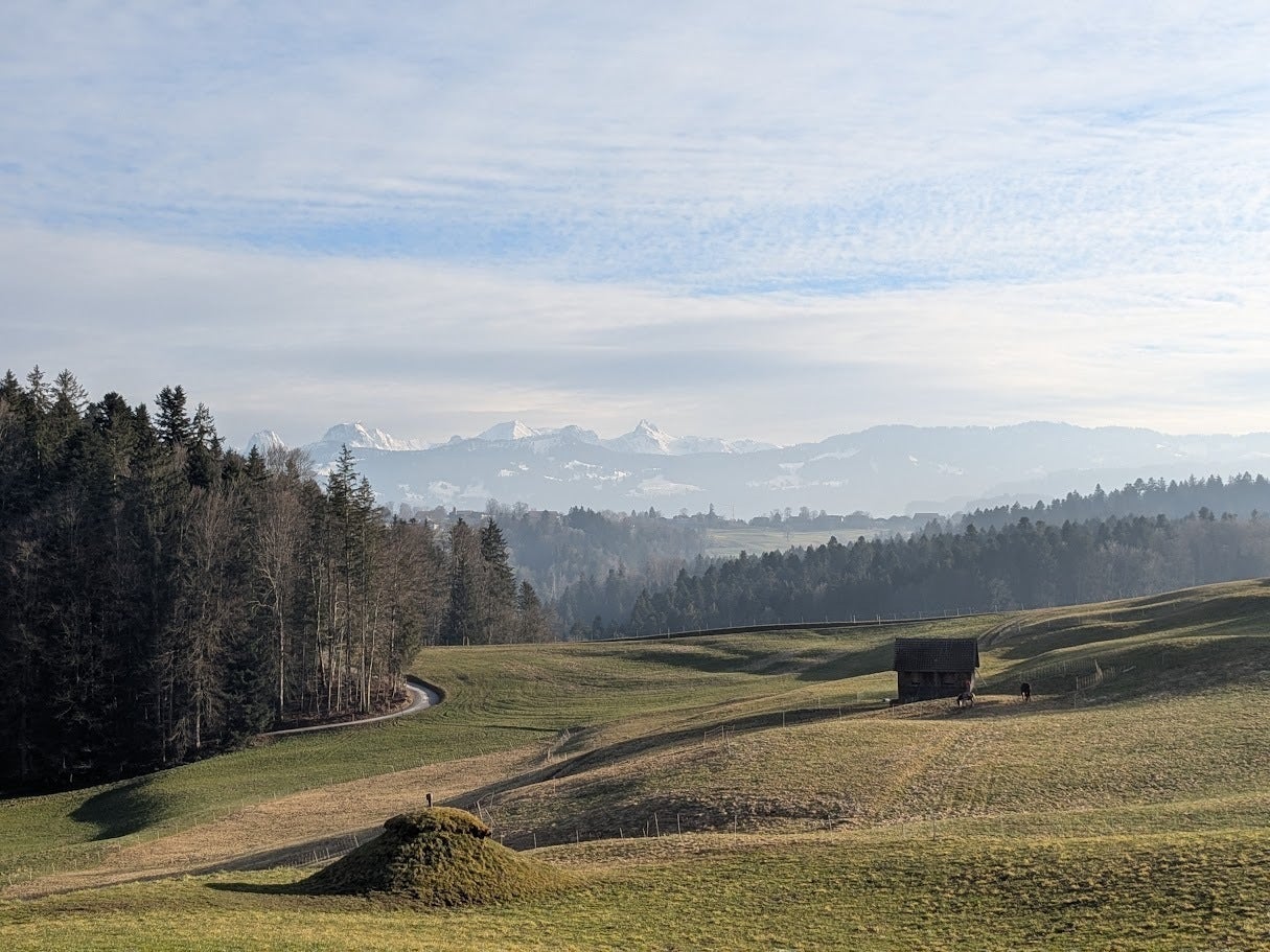 行ってみると、やはり素晴らしい学びが、美しいスイスの自然の中で繰り広げられ、自分の中にまた一つ新しい世界が広がった事を感じました。(↓先生の家からの景色。ほんとこのまま。)