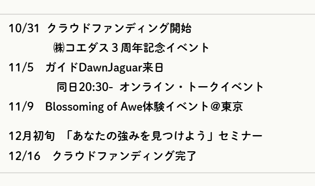 2025/11/18 17:18みなさんこんにちは。「ネイティブアメリカン直伝“争いなき平和”の智慧を広める旅と仲間集め」をしています、じゅんです。月日が経つのは早いもので、クラウドファンディング開始から2週間が経ちました。私はその間も様々なイベントを行ってきましたので、その様子を御覧ください。活動報告はNoteでやっています。https://note.com/junot/n/n08eb7e46adaeさてこのNoteを書いてからすぐに、目標金額に達成しましたが、私にとっては「50人を超えた」事がとても嬉しいです。控えめに言ってもマニアックでよくわからない世界の話で、日々の日常とは遠い世界にみえます。その中で、みなさんそれぞれの理由をもって、ご支援の決断をしてくださり、感謝しかありません。「うわ、こんなに興味持ってくれる人いたんだ。」という気持ちです。金額に関しては、幾らになっても僕はスイスへ行きますし、皆さんへ報告やワークショップを行います。其の上で、これを今後広めていき、日常の中から少しでもストレスや対立を減らす事ができたらと思いますので、もしこういうものに興味がありそうな方がいたら、ぜひご紹介いただけると嬉しいです。私自身は、今週引っ越しを迎えており、部屋の中が段ボールだらけです。これまでなら、こういった作業もイライラしたり不安があったりしたのでしょうが、今回は不思議と、楽しみながらできている気がします。一つ一つの「モノ」たちに、これからも持っていたいのか、それとももう役目は終えているのかを感じながら片付ける様はまるでコンマリ!!途中でサボりながらゆるやかにやっています。前回のWhite Eagle Womanからの助言(↓こちら)が、自分の中に残っているなあと感じています。https://note.com/junot/n/n095fa3eb3806さて引っ越しが終わったら、12月頭のイベントについて、告知しようと思います。お楽しみに。【今日の学び】感情の起伏や、心のアップダウンが大きい時は、不安が多い証拠です。そんな時に「今自分が想像している「起きたら嫌なこと」とは何かを想像し、できれば文字に書いてみましょう。たいていが次のどちらかです。1)宝くじくらい、それが起きる確率が低い 2)それが起きても、嫌かもしれないが、そこまで大した事にはならない 妄想は幾らでも膨らみますので、人に話すか、文字で思ったことをそのまま書いてみると良いです。書いた後、5分別のことをしてから読んでみると、冷静になります。読んだらゴミ箱に捨ててしまっても大丈夫。できればデジタルより紙とペンがオススメです。理由は、、、長くなるので後日また。 もっと見る