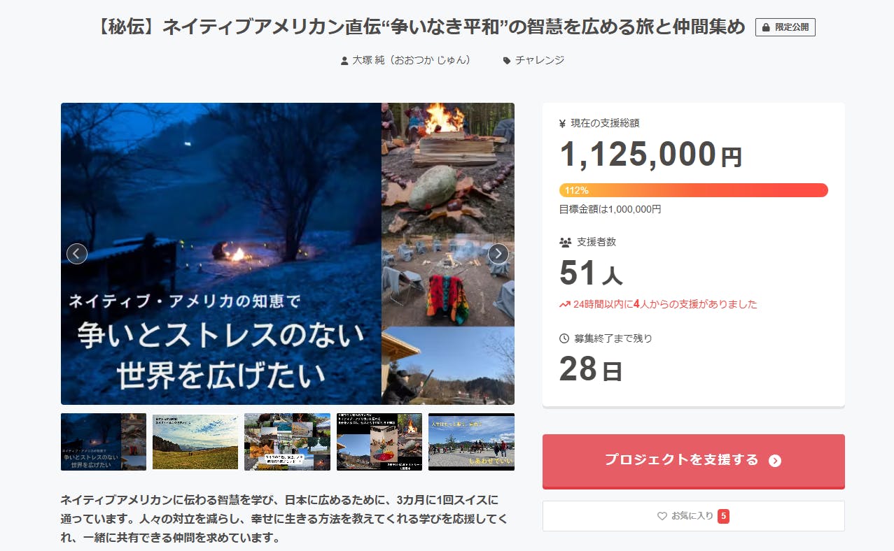 2025/11/18 17:18みなさんこんにちは。「ネイティブアメリカン直伝“争いなき平和”の智慧を広める旅と仲間集め」をしています、じゅんです。月日が経つのは早いもので、クラウドファンディング開始から2週間が経ちました。私はその間も様々なイベントを行ってきましたので、その様子を御覧ください。活動報告はNoteでやっています。https://note.com/junot/n/n08eb7e46adaeさてこのNoteを書いてからすぐに、目標金額に達成しましたが、私にとっては「50人を超えた」事がとても嬉しいです。控えめに言ってもマニアックでよくわからない世界の話で、日々の日常とは遠い世界にみえます。その中で、みなさんそれぞれの理由をもって、ご支援の決断をしてくださり、感謝しかありません。「うわ、こんなに興味持ってくれる人いたんだ。」という気持ちです。金額に関しては、幾らになっても僕はスイスへ行きますし、皆さんへ報告やワークショップを行います。其の上で、これを今後広めていき、日常の中から少しでもストレスや対立を減らす事ができたらと思いますので、もしこういうものに興味がありそうな方がいたら、ぜひご紹介いただけると嬉しいです。私自身は、今週引っ越しを迎えており、部屋の中が段ボールだらけです。これまでなら、こういった作業もイライラしたり不安があったりしたのでしょうが、今回は不思議と、楽しみながらできている気がします。一つ一つの「モノ」たちに、これからも持っていたいのか、それとももう役目は終えているのかを感じながら片付ける様はまるでコンマリ!!途中でサボりながらゆるやかにやっています。前回のWhite Eagle Womanからの助言(↓こちら)が、自分の中に残っているなあと感じています。https://note.com/junot/n/n095fa3eb3806さて引っ越しが終わったら、12月頭のイベントについて、告知しようと思います。お楽しみに。【今日の学び】感情の起伏や、心のアップダウンが大きい時は、不安が多い証拠です。そんな時に「今自分が想像している「起きたら嫌なこと」とは何かを想像し、できれば文字に書いてみましょう。たいていが次のどちらかです。1)宝くじくらい、それが起きる確率が低い 2)それが起きても、嫌かもしれないが、そこまで大した事にはならない 妄想は幾らでも膨らみますので、人に話すか、文字で思ったことをそのまま書いてみると良いです。書いた後、5分別のことをしてから読んでみると、冷静になります。読んだらゴミ箱に捨ててしまっても大丈夫。できればデジタルより紙とペンがオススメです。理由は、、、長くなるので後日また。 もっと見る