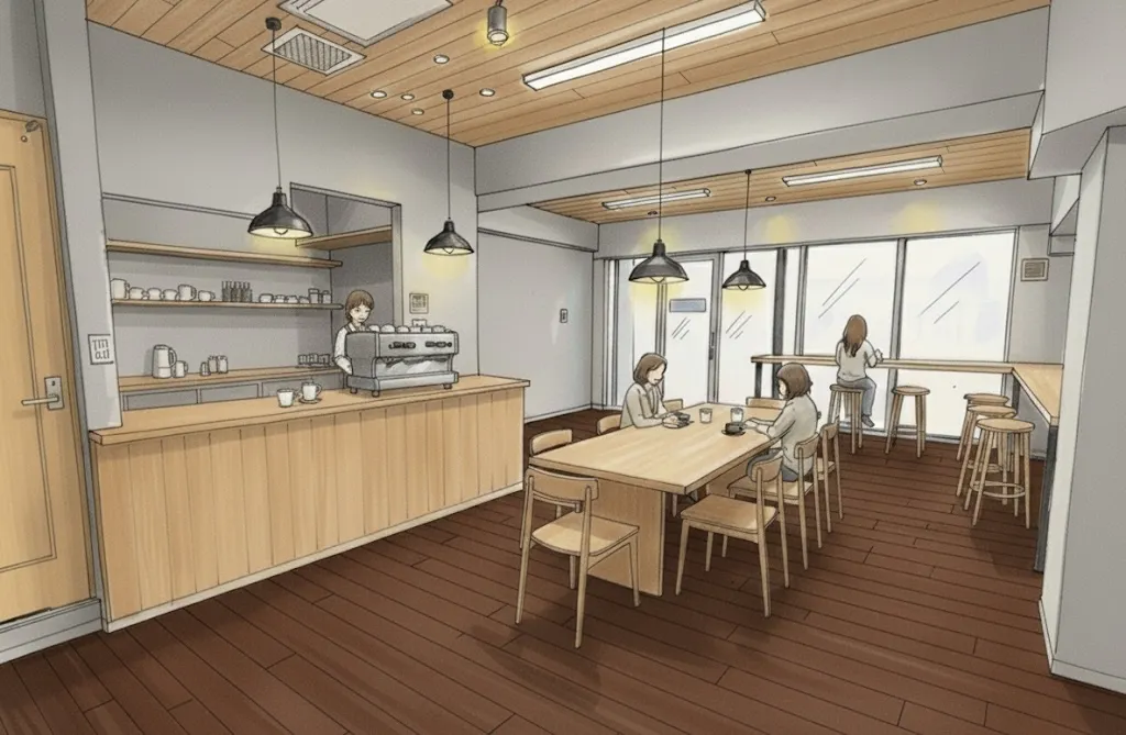 カウンターテーブルや大テーブル、ソファ席なども設置予定です。