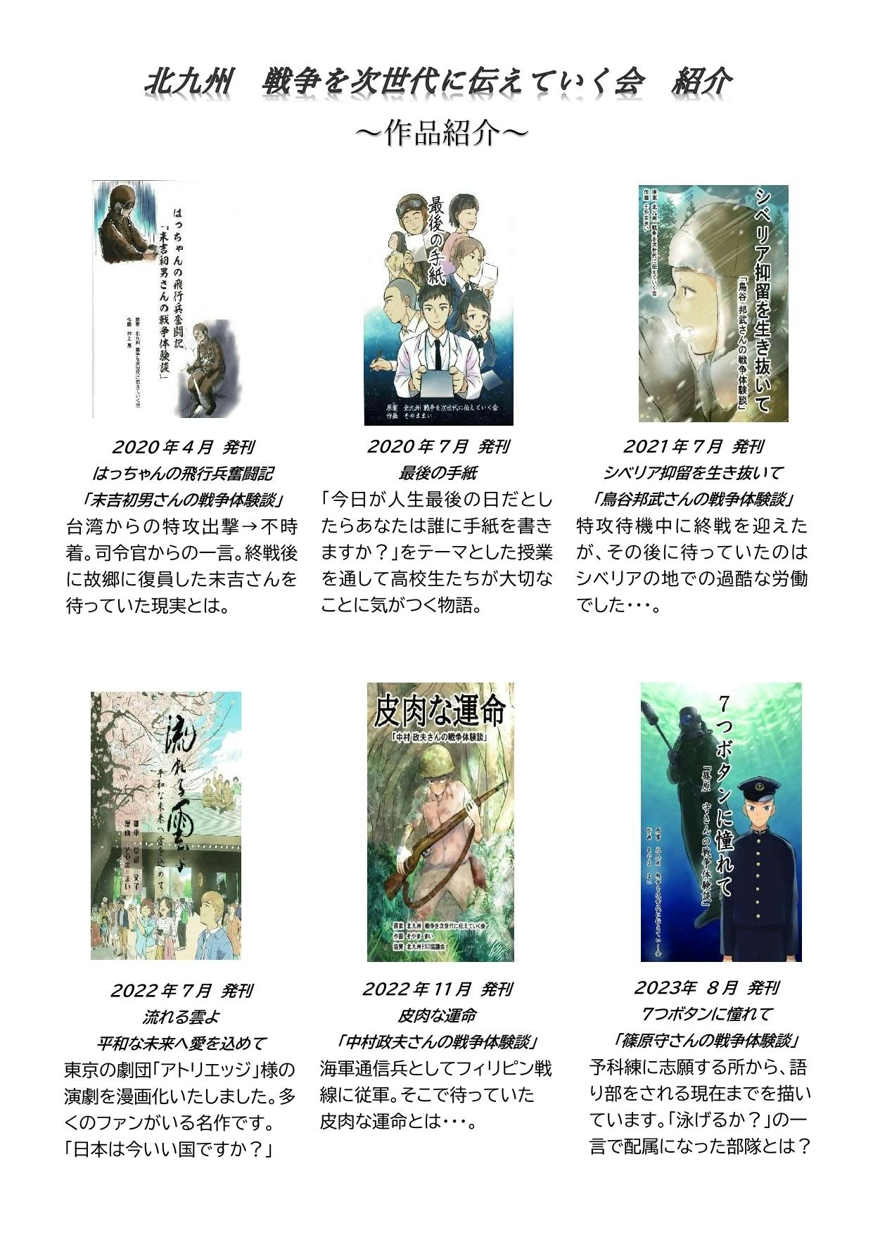 やはり、ちょっとした興味ぐらいで手にとるには活字資料はハードルが高いのではないでしょうか。まずは手軽に手にとり、少しでも「戦争」や「平和学習」に興味を持ってもらえるような入り口を作っていきたいと思っています。