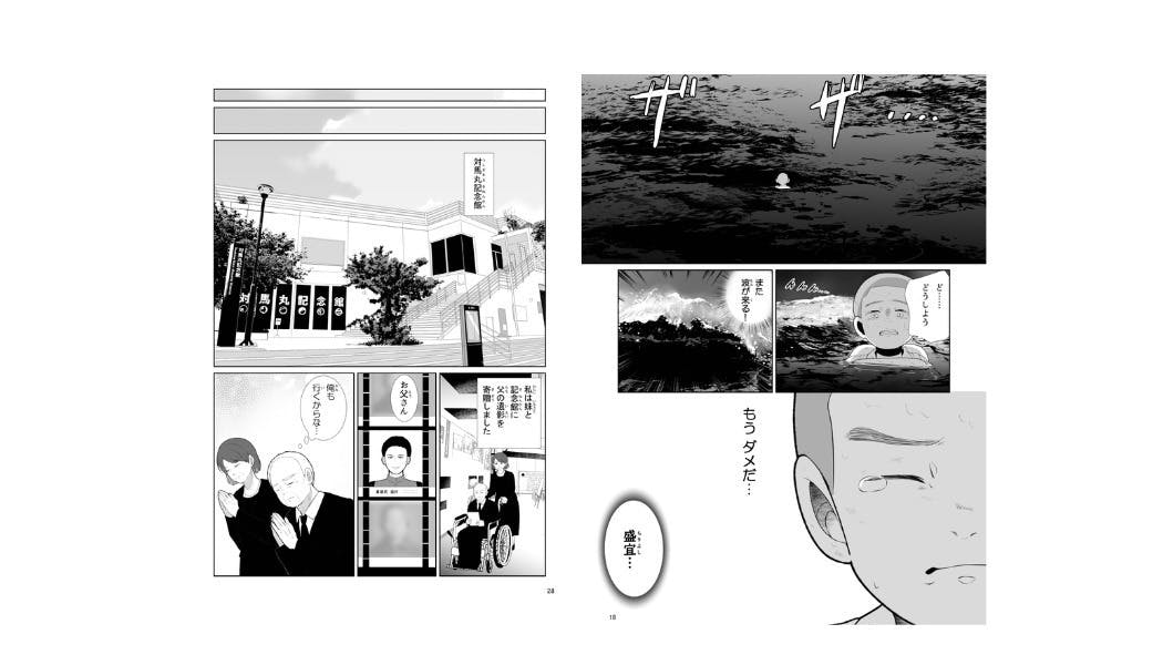 この事件の生存者の方のお一人にお話が伺えるようになり、夏に早速沖縄に取材に伺いました。当時10歳だった少年が経験した戦争を漫画で次世代に伝えます。対馬丸記念館様のご協力もあり、製本活動は順調に進んでおり現在下書きが完成した段階です。来年(2026年)の1月に完成予定です。