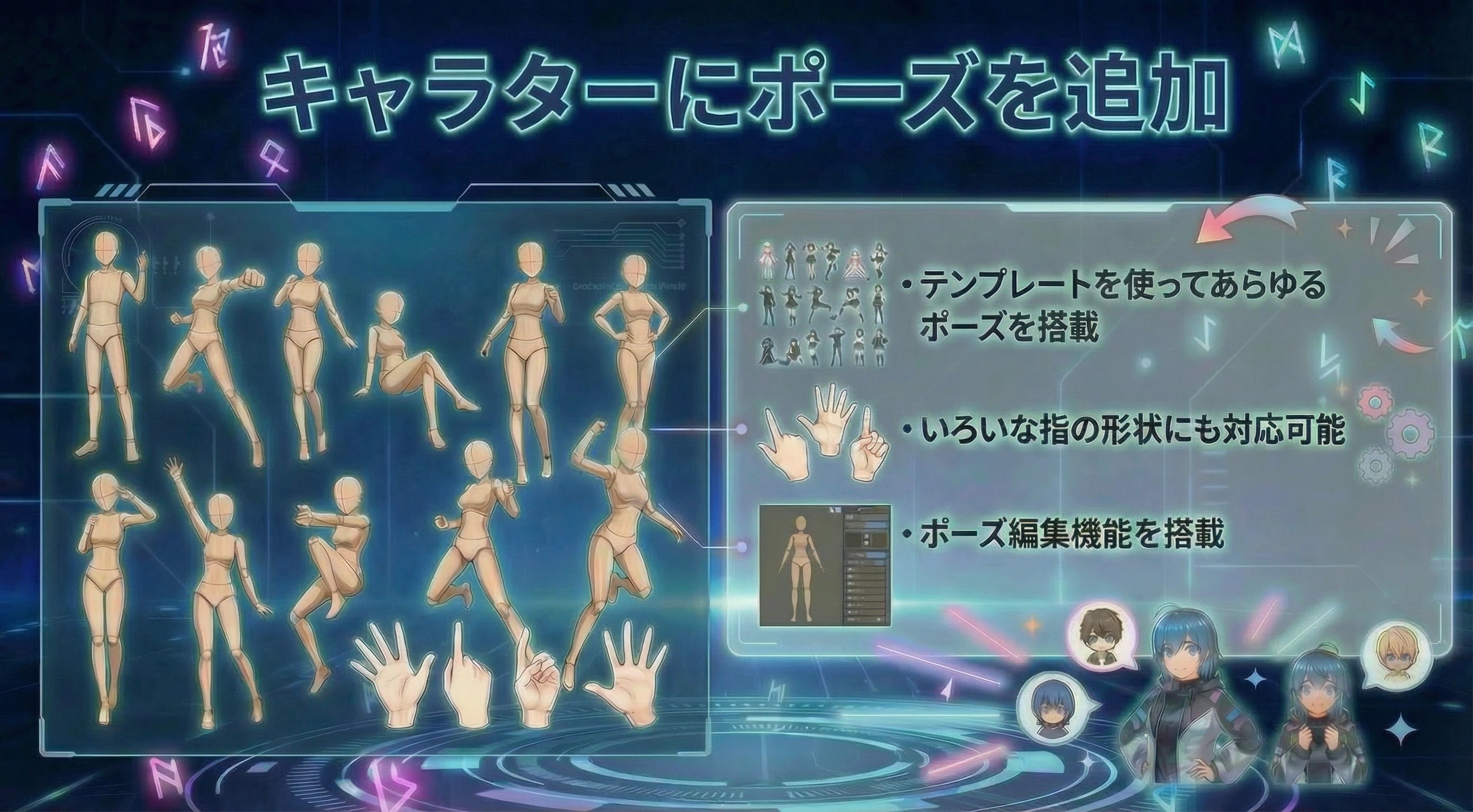 本プロジェクトでは、AIを人の代替とするのではなく、あくまで制作を支える補助的なツールとして活用することで、こうした課題を解決したいと考えています。VRMなどの3Dキャラクターデータを登録し、キャラクターデザインの一貫性を保ったまま、モーション選択やポーズ指定を行い、AIで自然に動かす――そんなアニメ制作ツールを開発します。