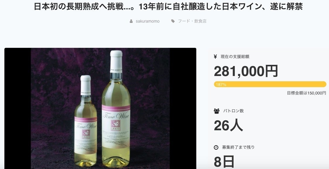 掲載期間が残り8日となりましたが、最後までタイムワインの魅力を伝えられるよう、随時活動報告を更新して参ります。