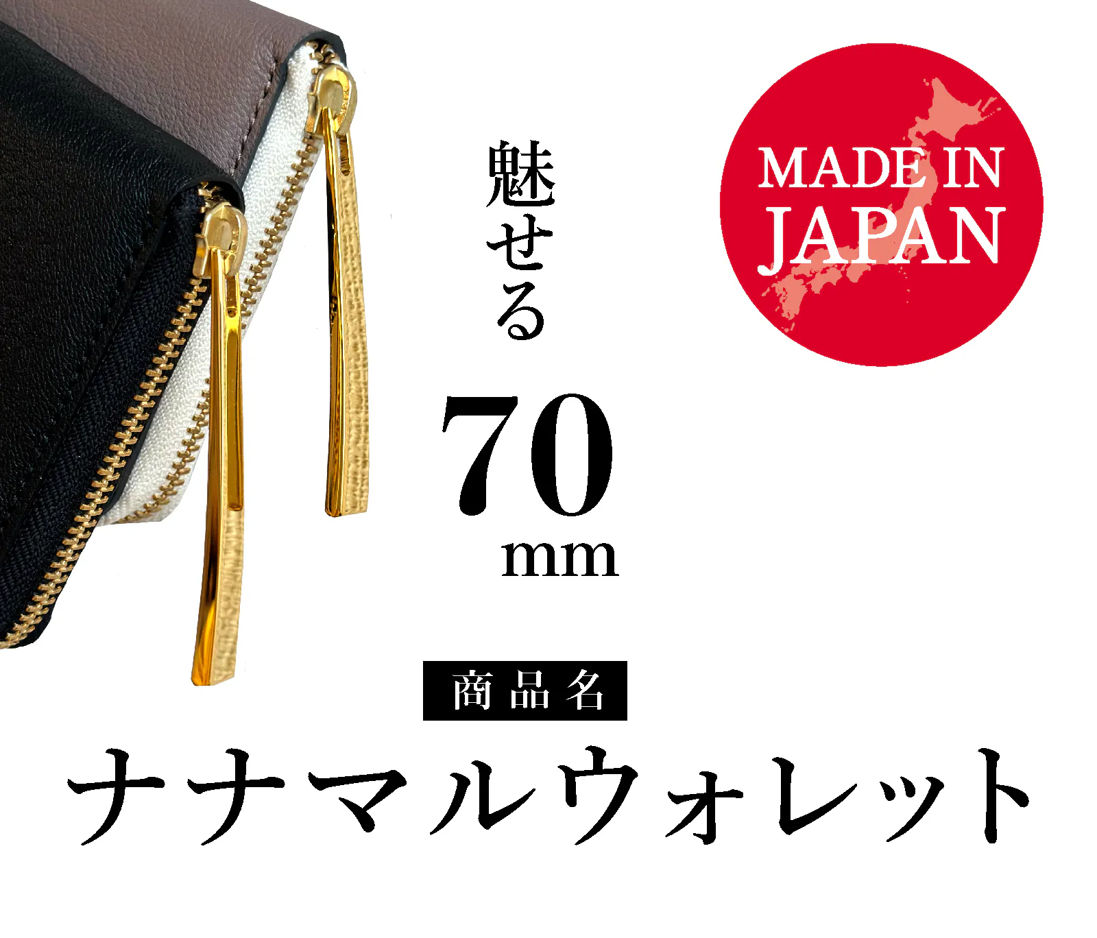A. 従来の財布にはない、あえて長めの引き手(70mm)を付けることで、手に馴染みやすく“持ち歩きたくなる”デザインを実現しました。持ちやすいだけでなく、見た目のバランスも考慮し、ファッションアイテムとしての存在感を高めています。