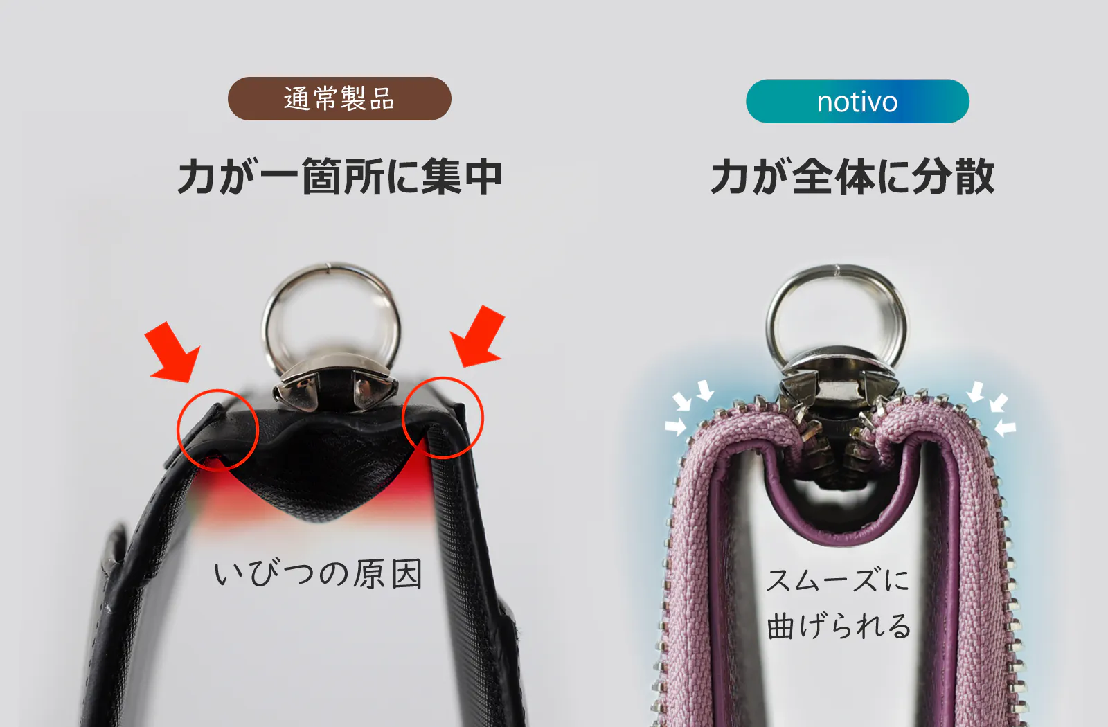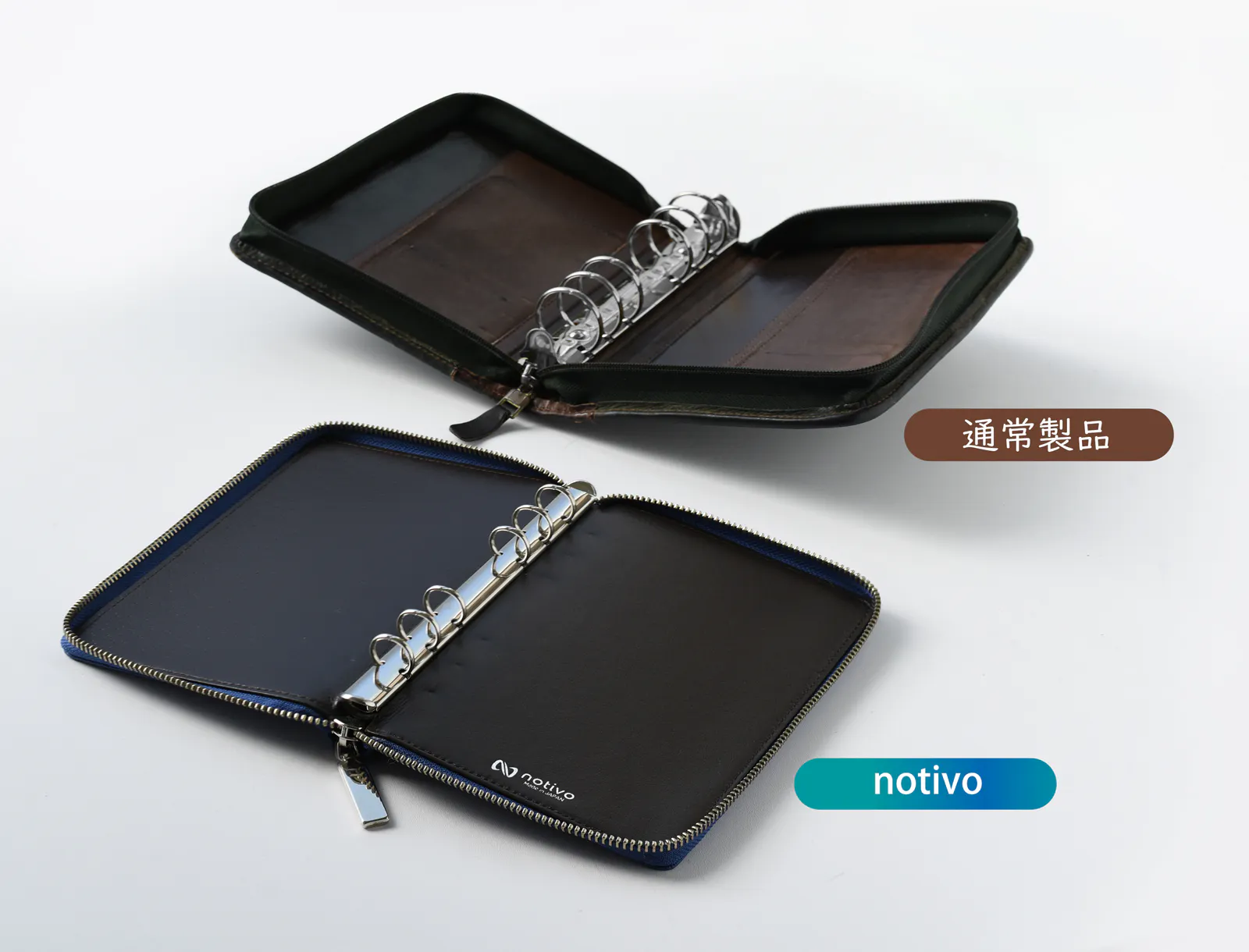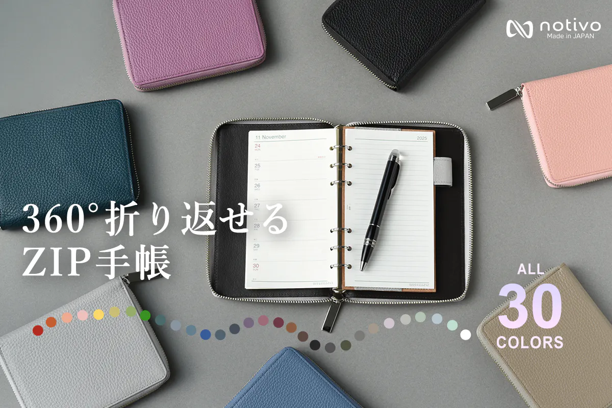 だからこそ、notivo ZIP手帳では、熟練職人が一枚一枚を丁寧に調整し、驚くほどスムーズな開き心地を実現しました。