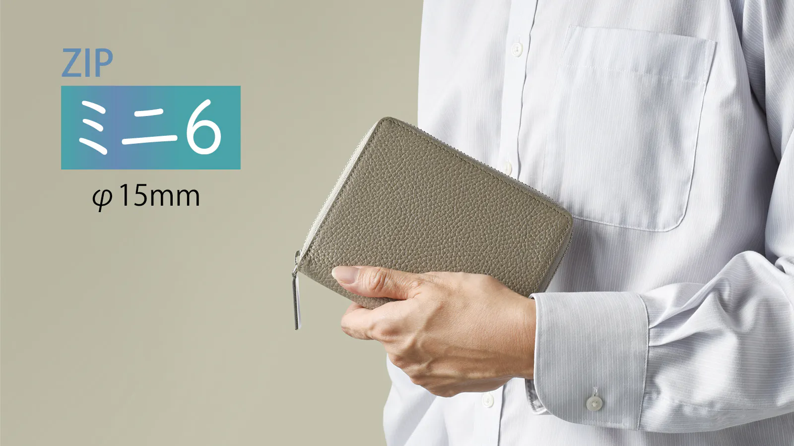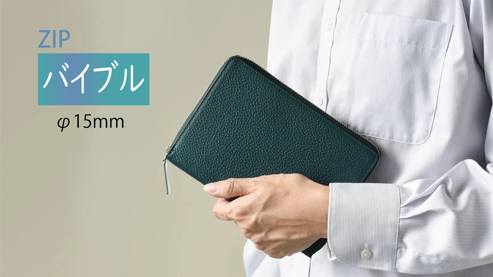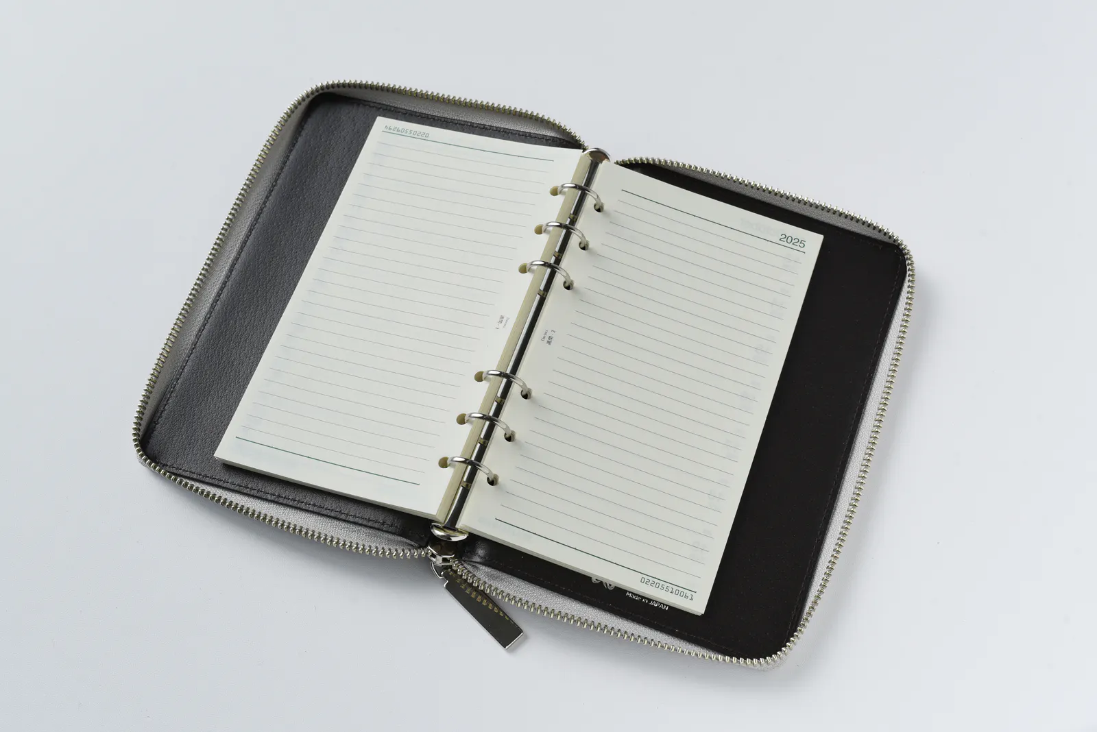ZIP手帳は激しい動作や多忙な現場でも中身が落ちないよう、あえて外側にポケットを設けないシンプルな構造で仕上げていました。