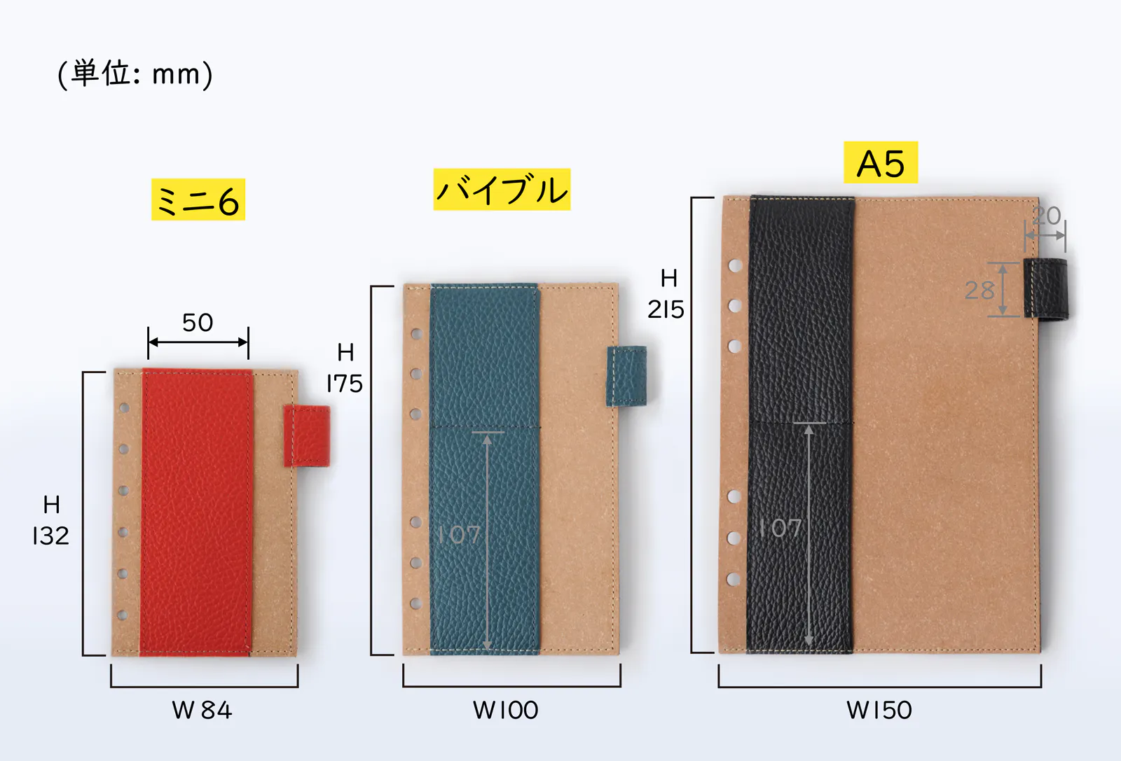 notivoは使用スタイルとシーンにより、3種類の手帳サイズをご用意しました。