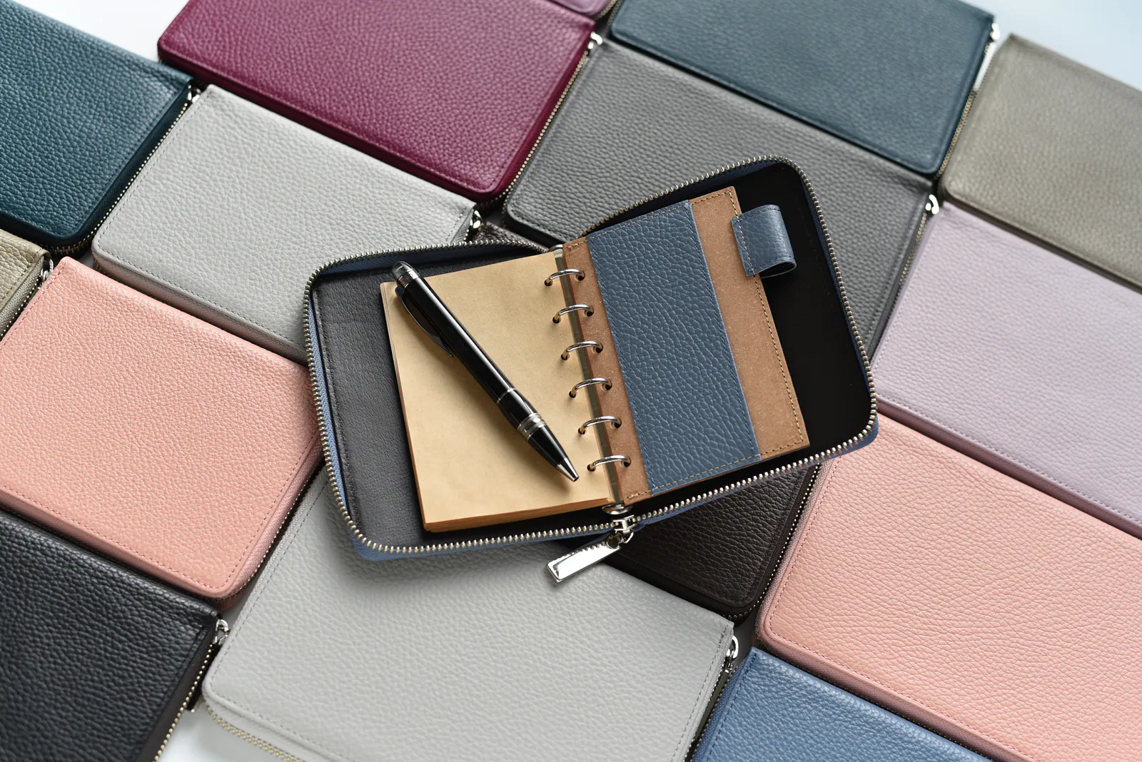 展開製品:システム手帳、ノートカバー、リングノートなどの文房具製品。