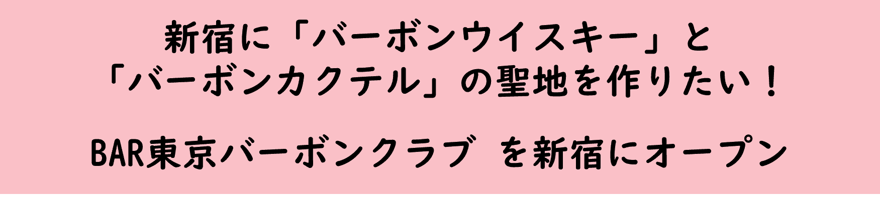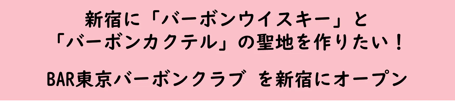 新宿での直営店2店舗からほど近い場所に3店舗目となる直営店「BAR東京バーボンクラブ」をオープンします。このバーは「バーボンウイスキー」と「バーボンカクテル」の聖地を目指します。