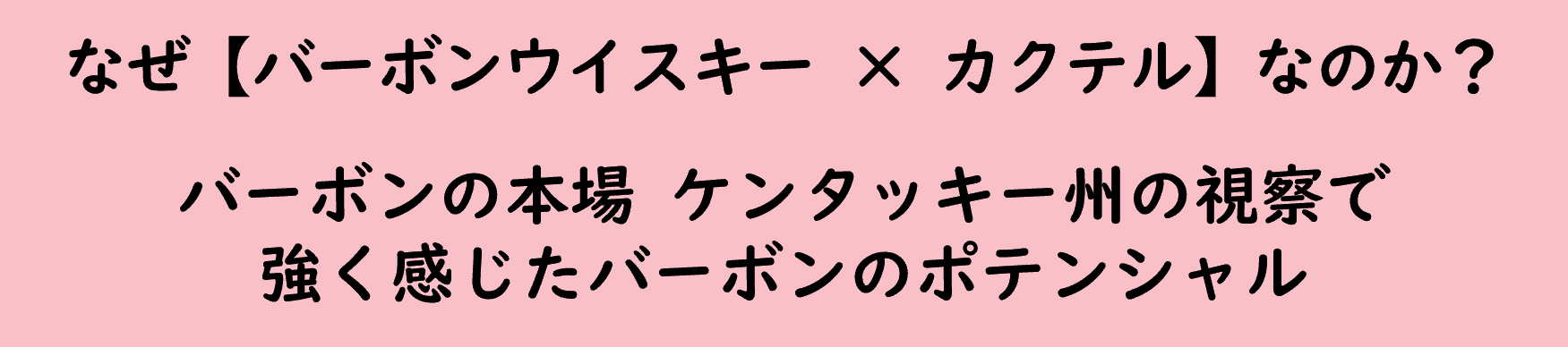 カクテルのルーツであるアメリカンウイスキーに立ち返り、日本のバーボンシーンに革命を起こす、新たなムーブメントの始まりです。