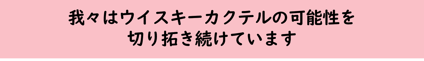 これまでにウイスキーベースのカクテルを開発し続けてきた我々と共に挑戦して頂ければ幸いです。