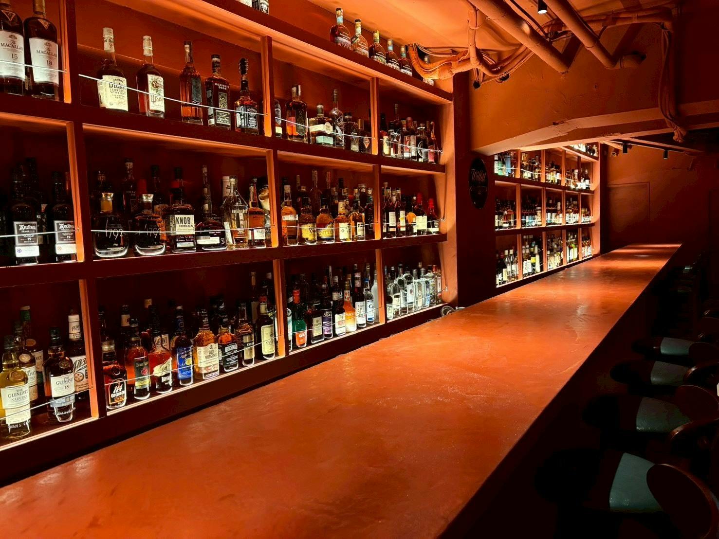BAR東京バーボンクラブは、バーボンに特化した大人のためのバー。定番から希少ボトルまで幅広く揃え、バーボンを主役にしたカクテルも楽しめます。内装は赤を基調としており、高級左官塗材による継ぎ目のないシームレスな仕上がりです。最大14名が座れる長いカウンターは、新宿三丁目でで一番長いかも...?!
