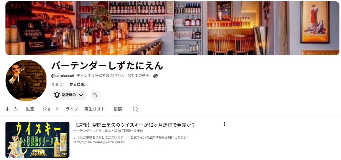 以下は、オーナーの静谷和典のYouTubeチャンネル「バーテンダーしずたにえん」に投稿された動画の数々です。