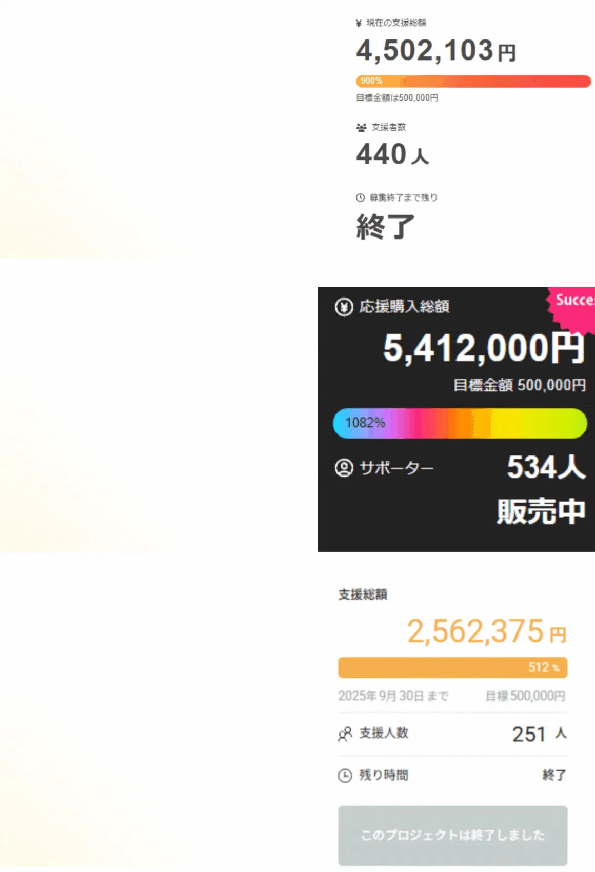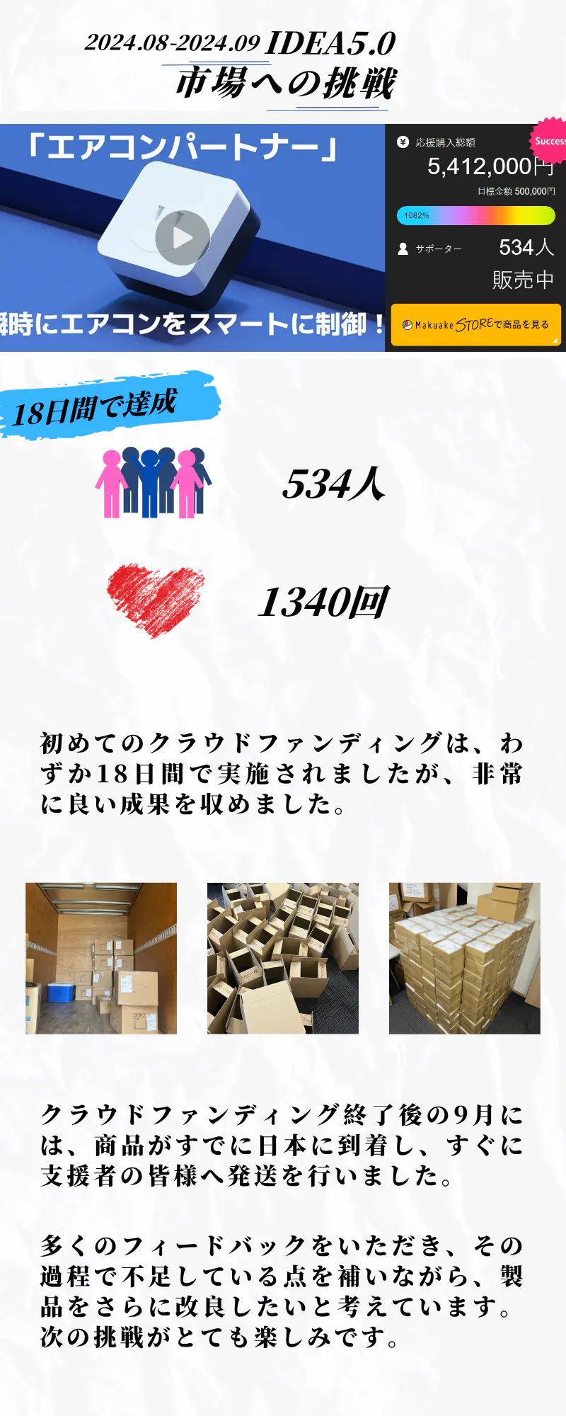 目標金額達成の御礼と発送についてのご案内