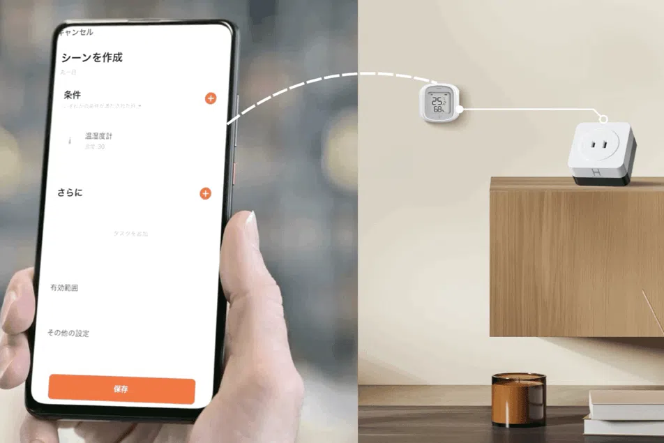たとえば「〇℃を超えたら冷房ON」「湿度が下がったらOFF」など、自分好みの条件を自由に組み合わせて、自動制御が設定できます。