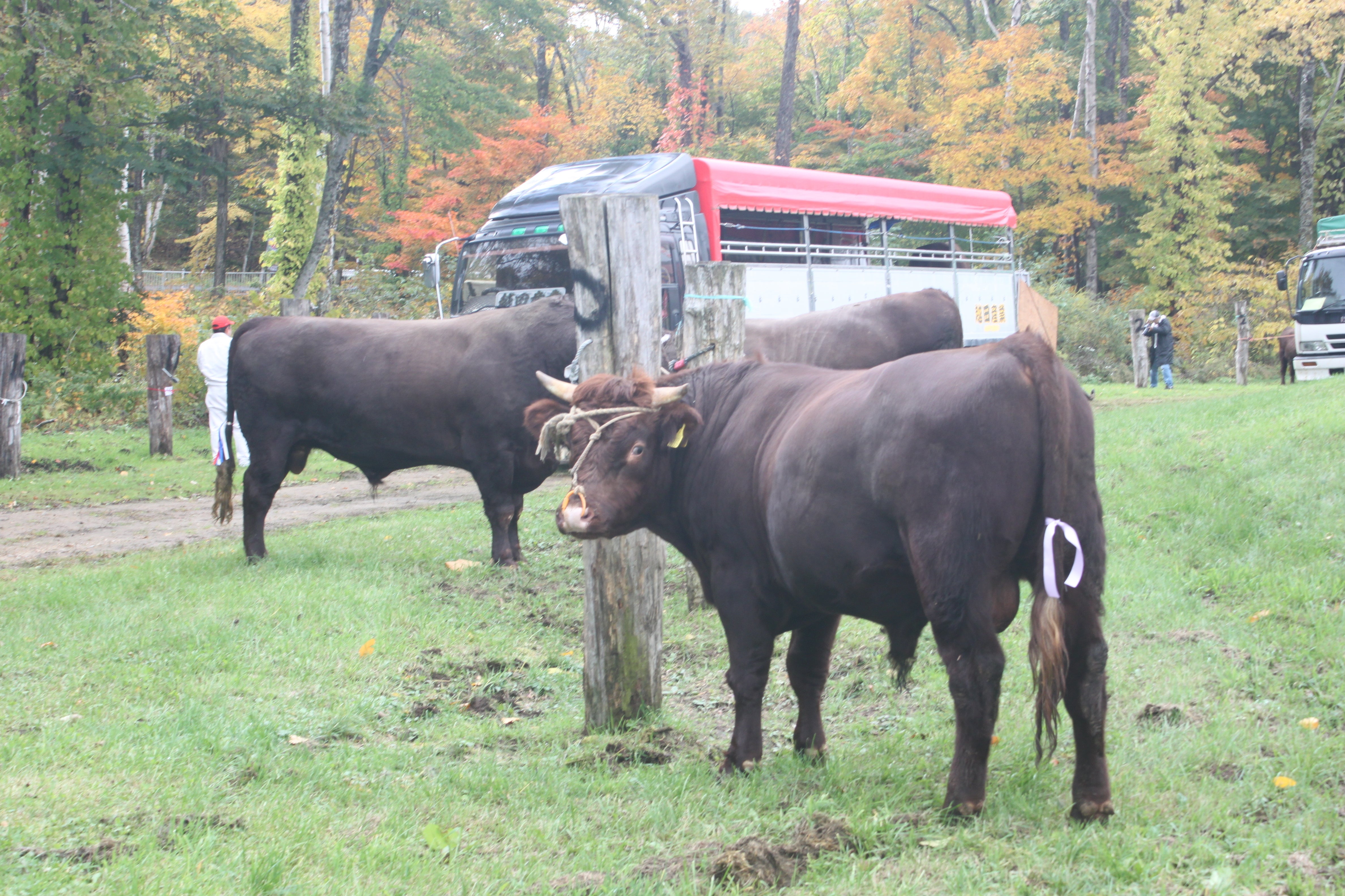 当時、荷役の先頭に立つリーダーの牛を決めるために牛の角突き(闘牛)をしていました。