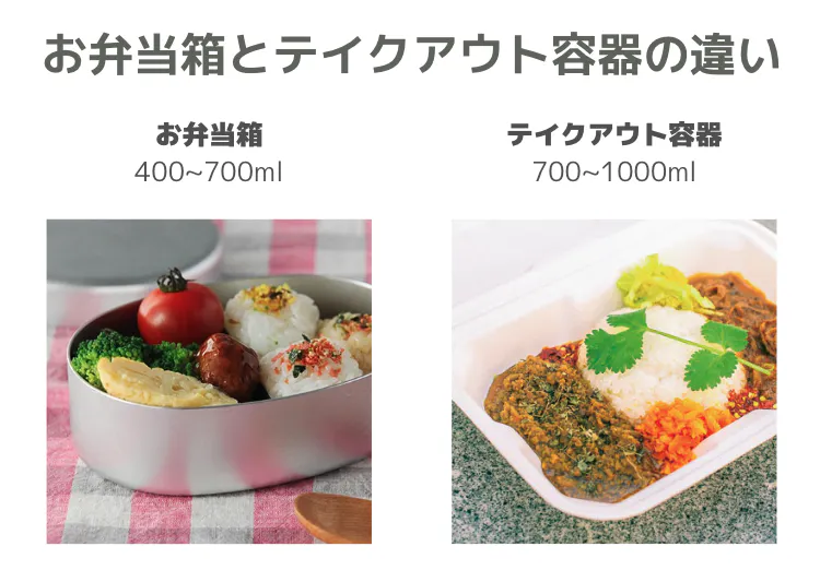テイクアウトでは、ふわっと盛り付けるので、既存のサイズでは小さいのです。