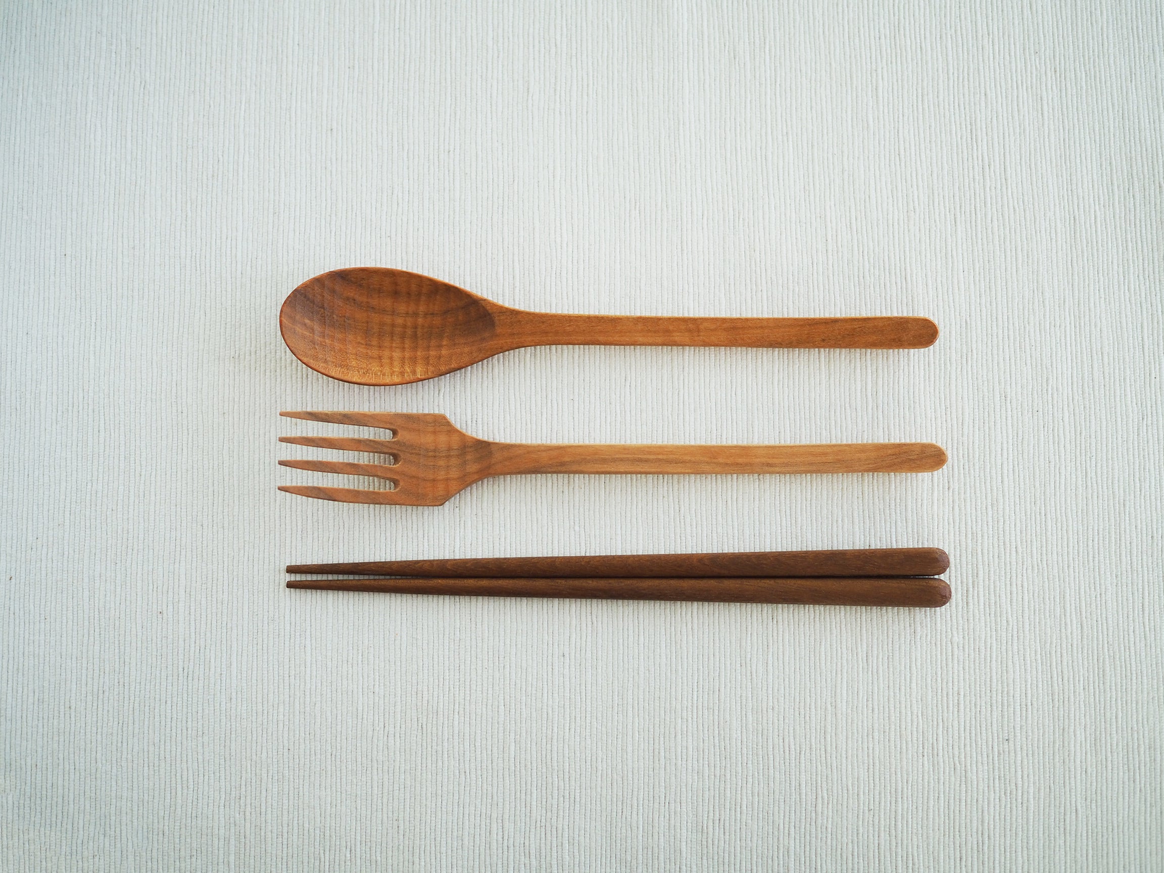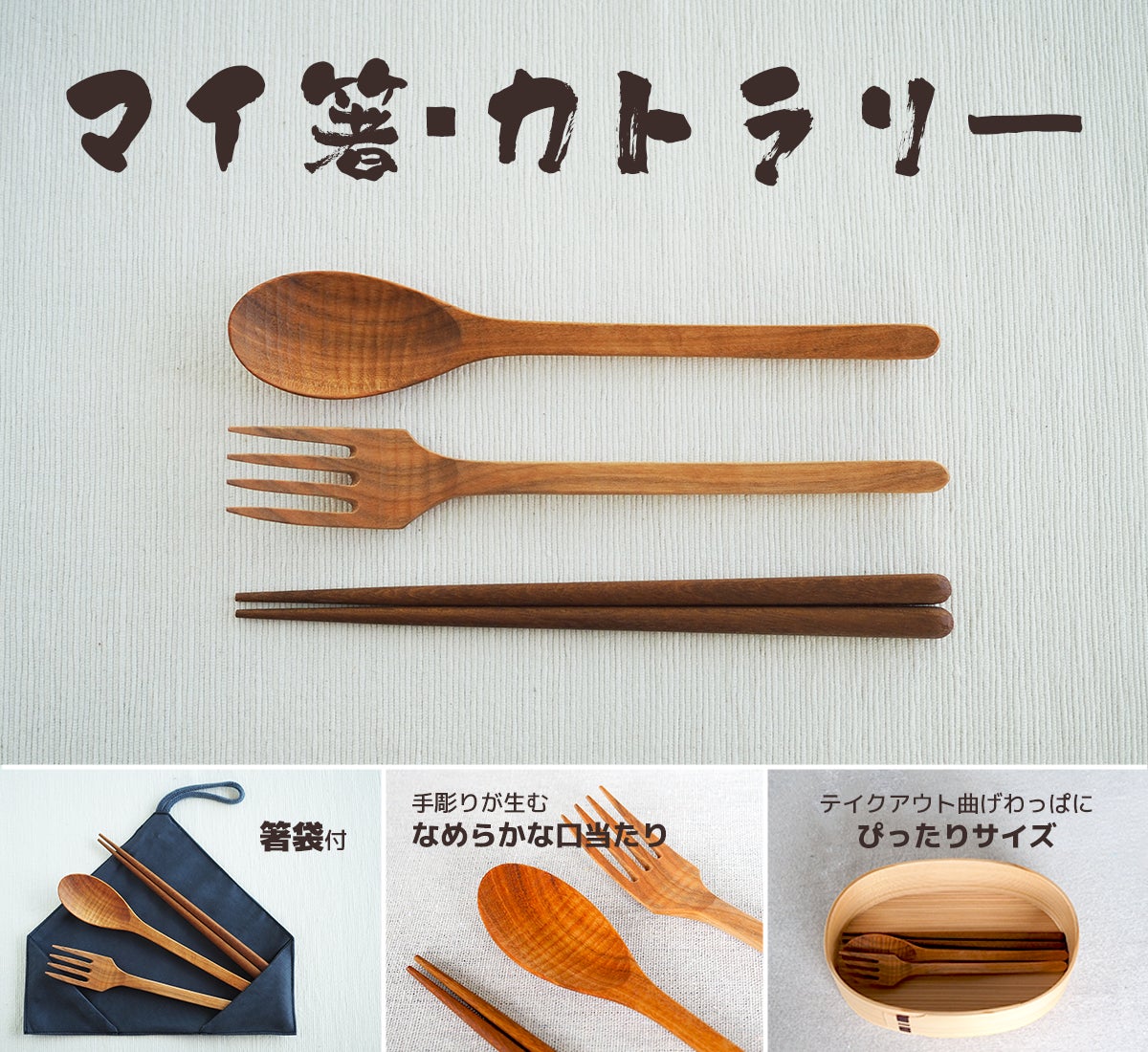 テイクアウト「曲げわっぱ」と一緒に持ち歩きたくなる、マイ箸とカトラリーも制作しました。