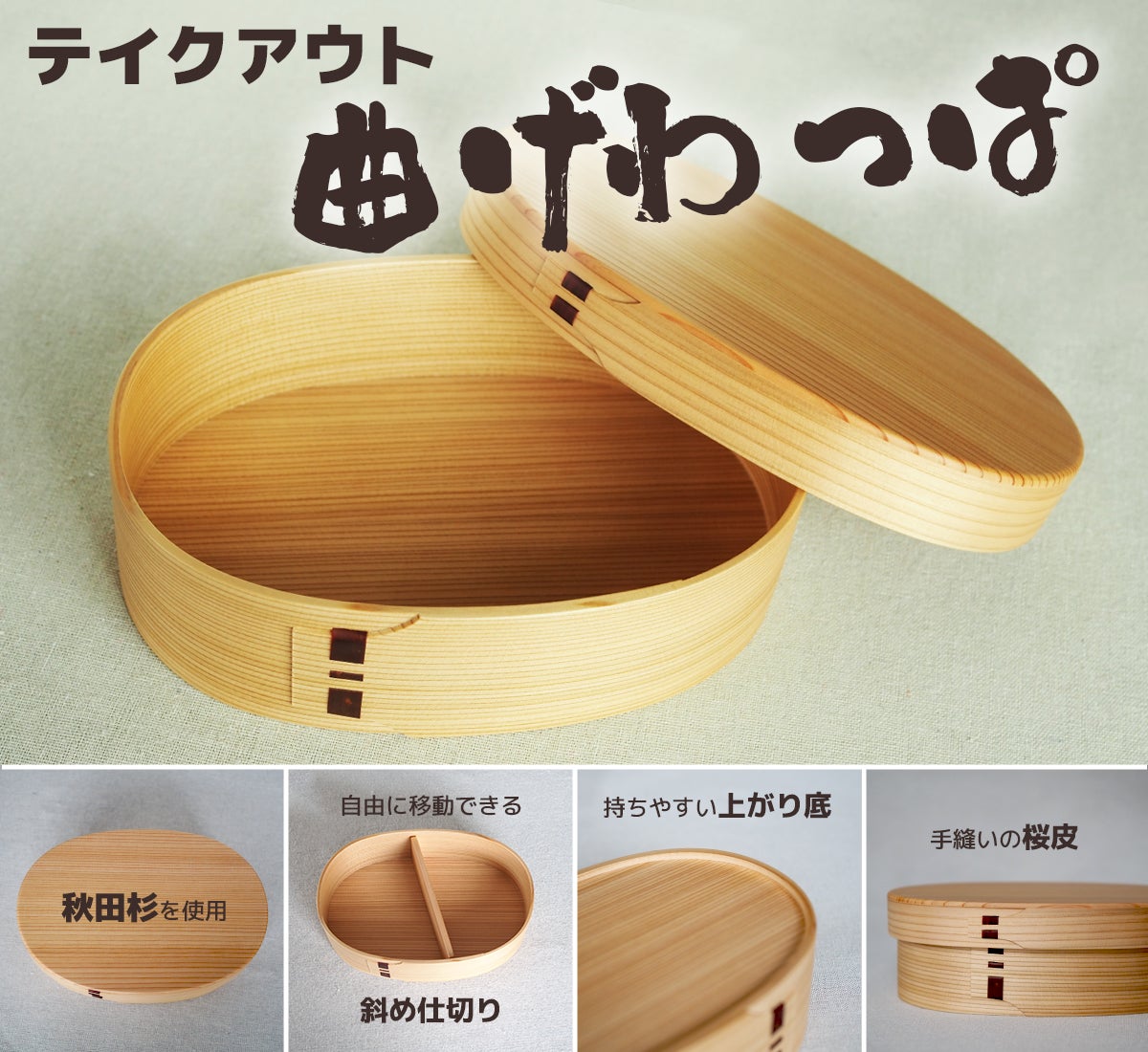 既存の「曲げわっぱ」を、テイクアウト用に改良しました。