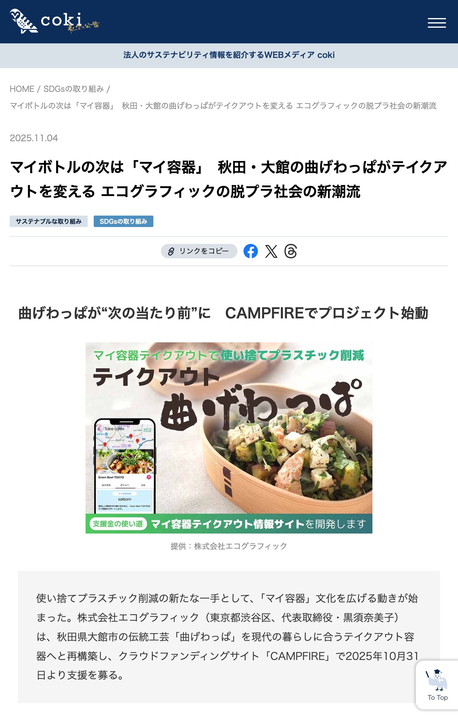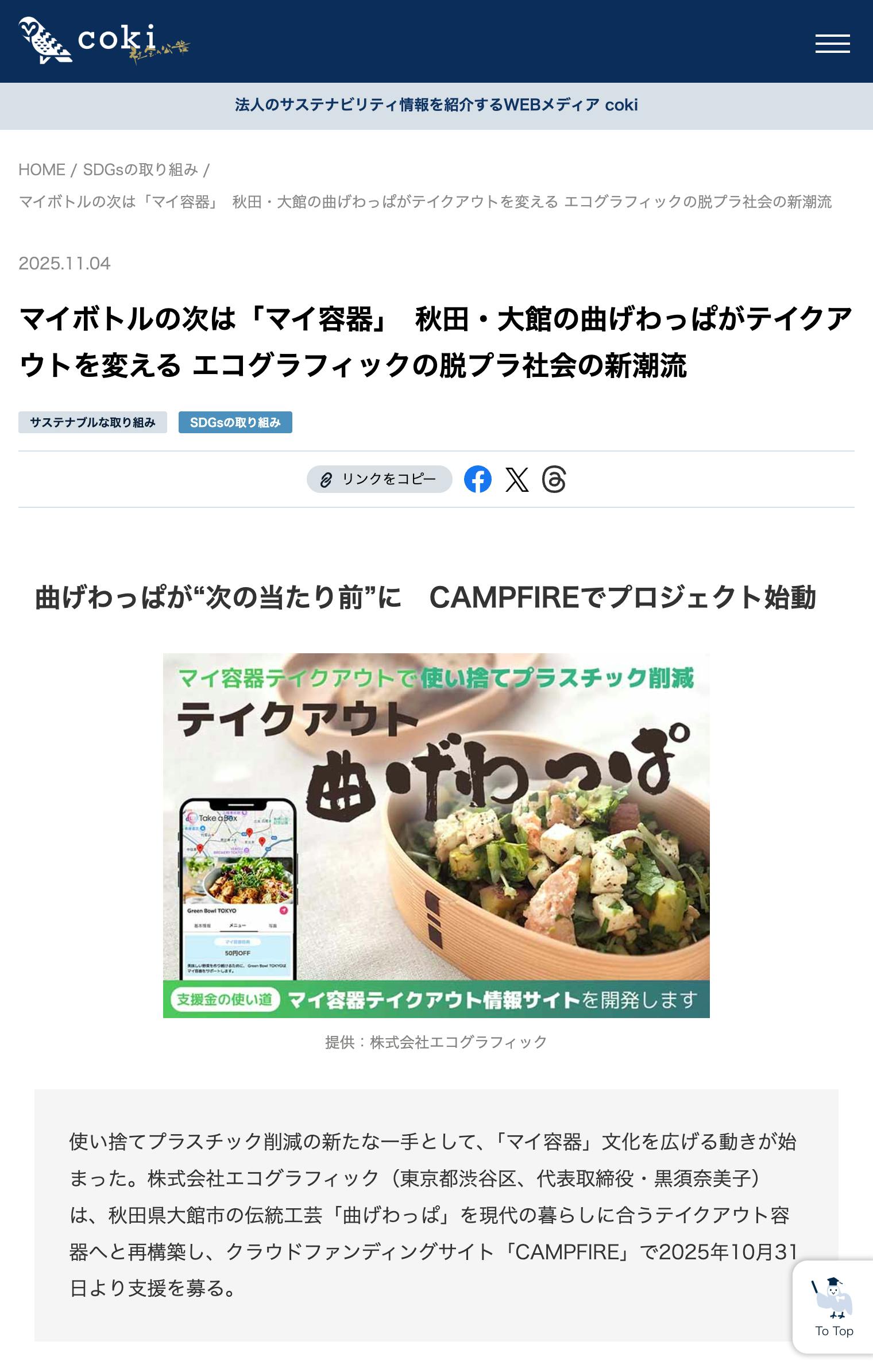 法人のサステナビリティ情報を紹介するWEBメディア「coki」に掲載されました!