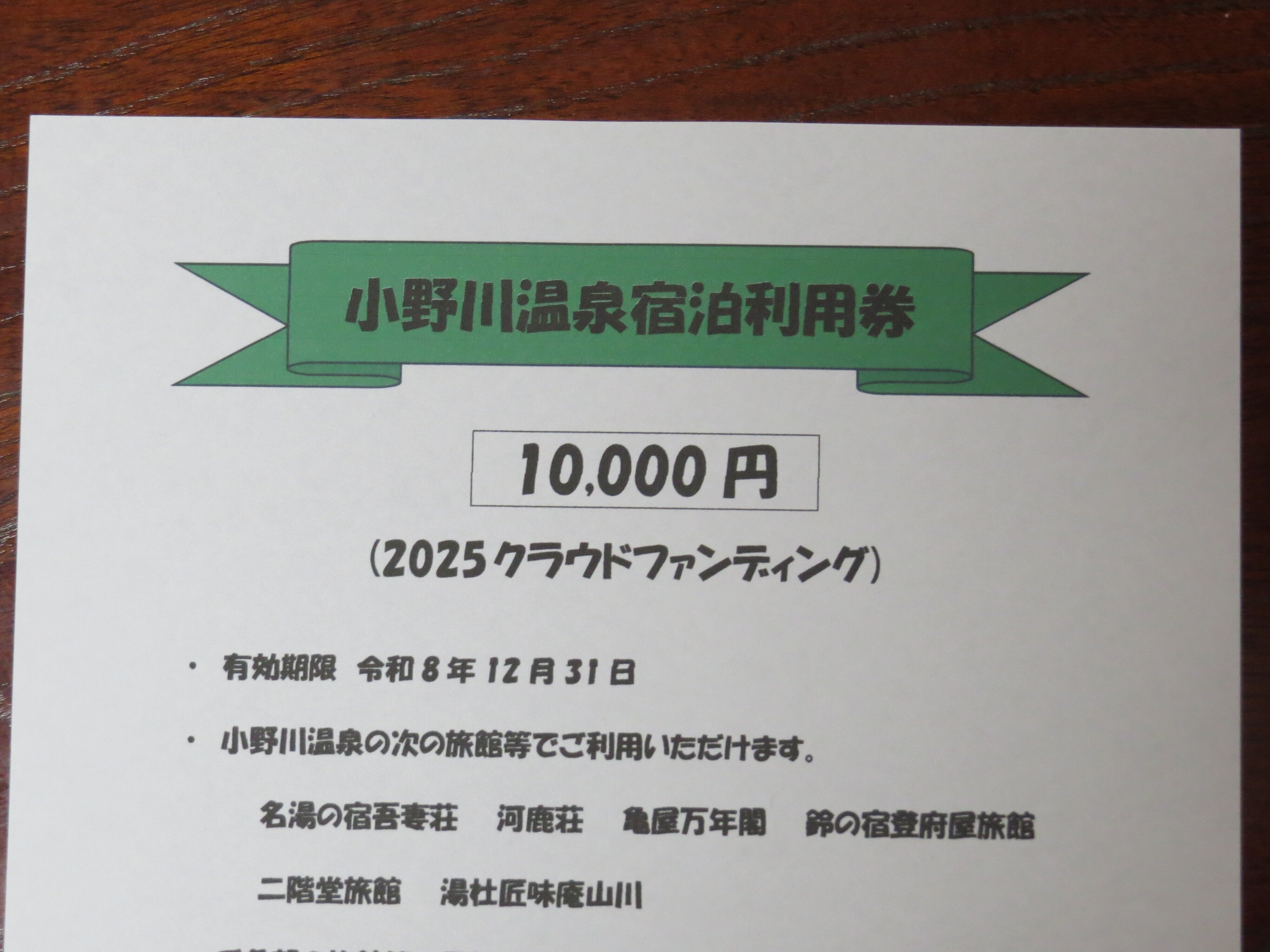 ・小野川温泉宿泊利用券(10,000円分 利用期限R8.12.31)※1
