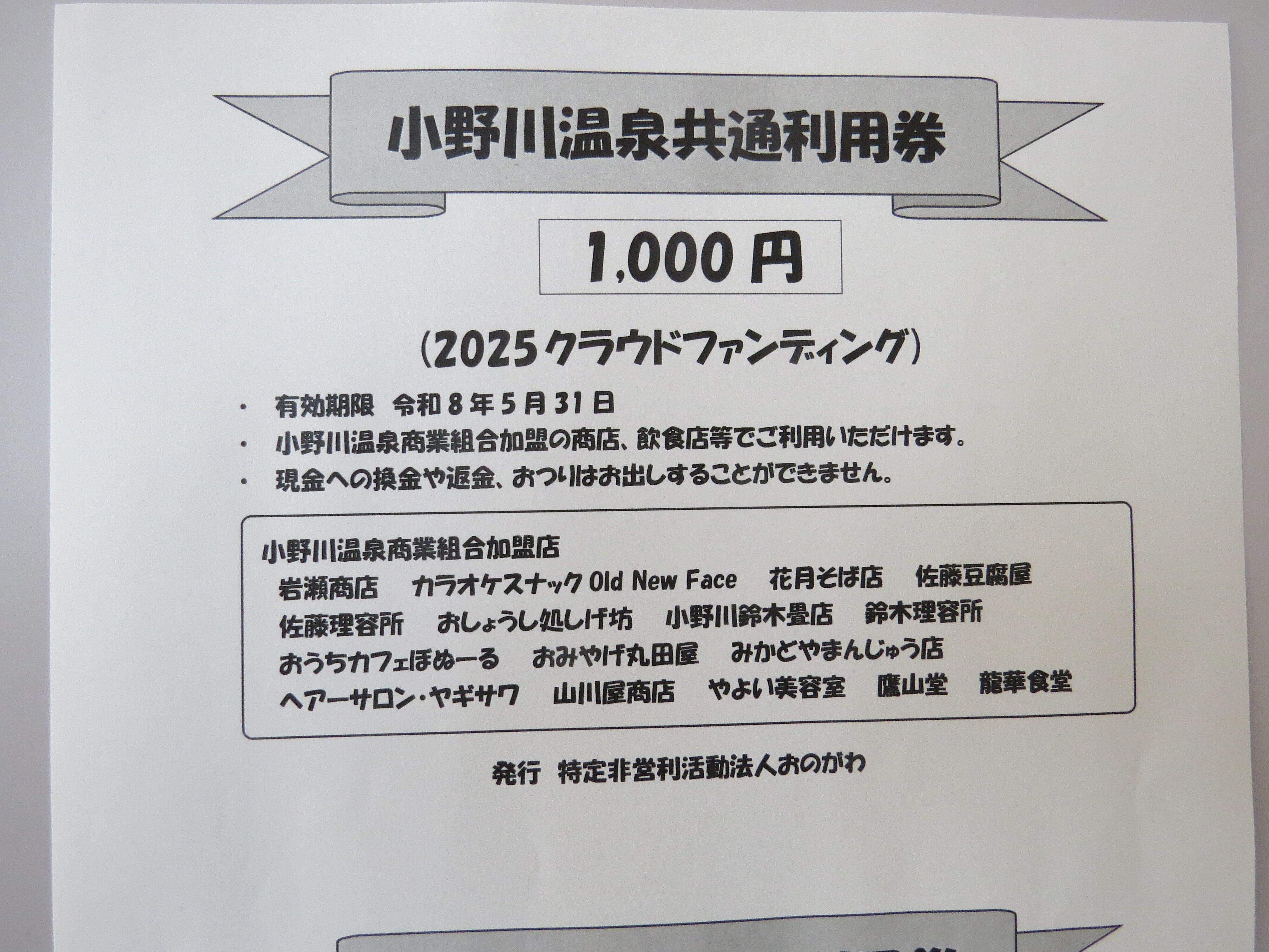 ※1利用可能店舗 小野川温泉商業組合加盟店