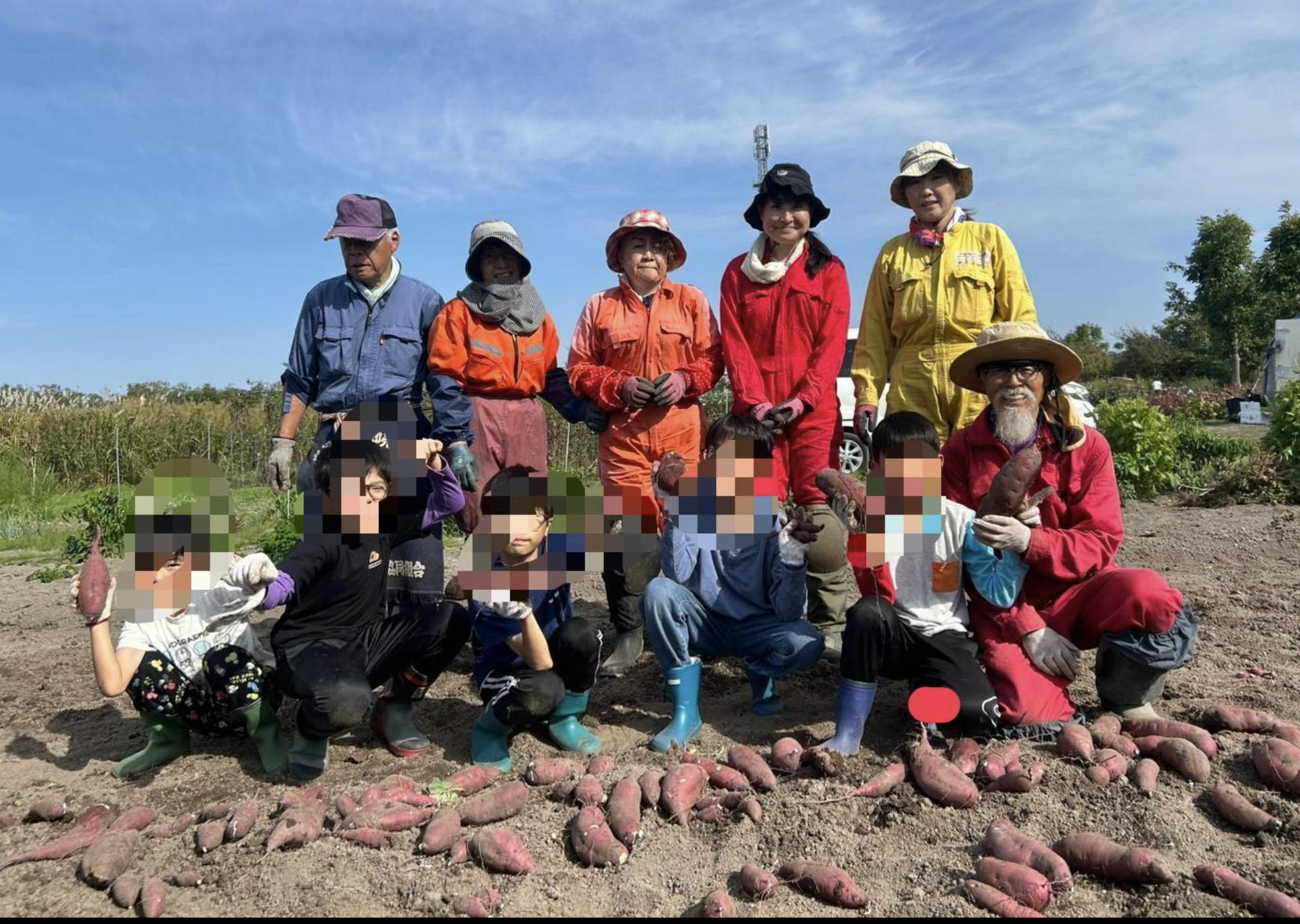 キッズ農園には、児童養護施設柏葉荘の子ども達,息子家族,息子のお友達家族,娘裕美さんとお仲間達,他大人11人子ども12人でサツマイモ掘りとレインボーとうもろこしの収穫をしました。子ども達は農作業の後は癒しの杜で一杯遊んで帰りました。楽しい楽しい一日中でした。