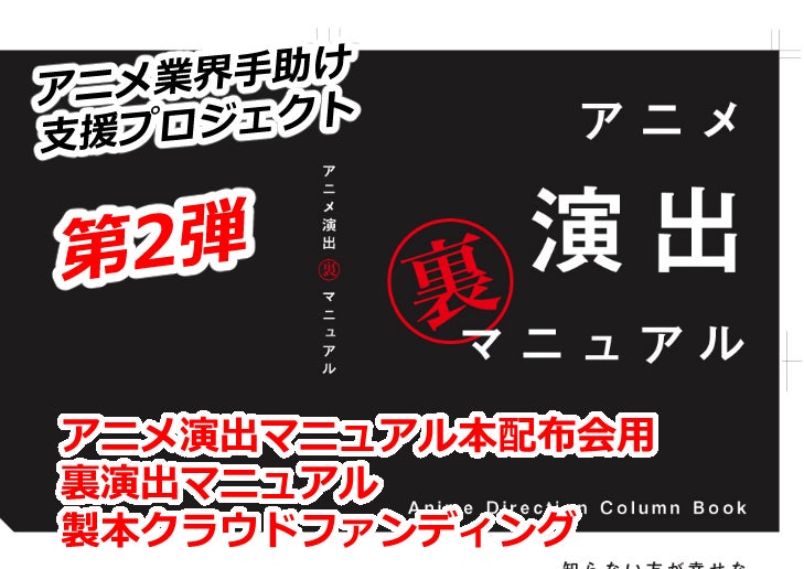 アニメ業界の現場で本当に役立つ「裏演出マニュアル本」を製作し、来年以降も継続して新人演出を手助けするための資金を集めるために、