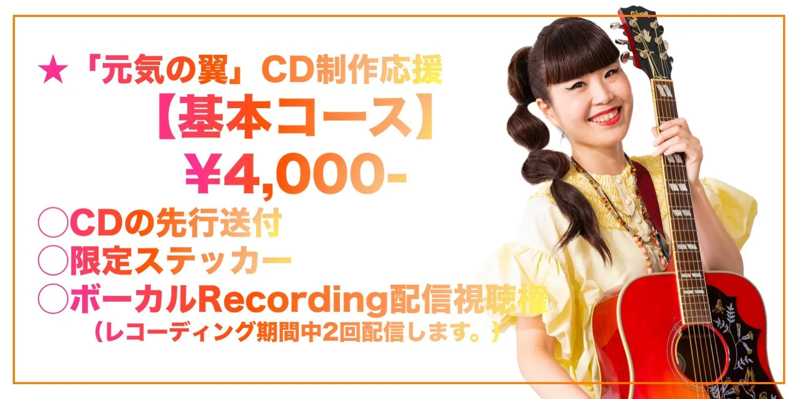 ・「元気の翼」の完成CDを先行送付。・限定ステッカー・ボーカルレコーディング配信視聴権(レコーディング期間中に2回行います。)