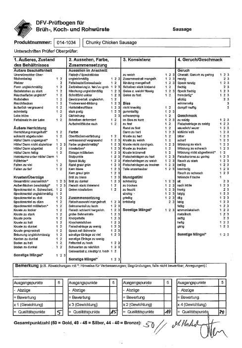 実際の採点表。50点満点中50点を獲得しないと金賞は受賞できません。