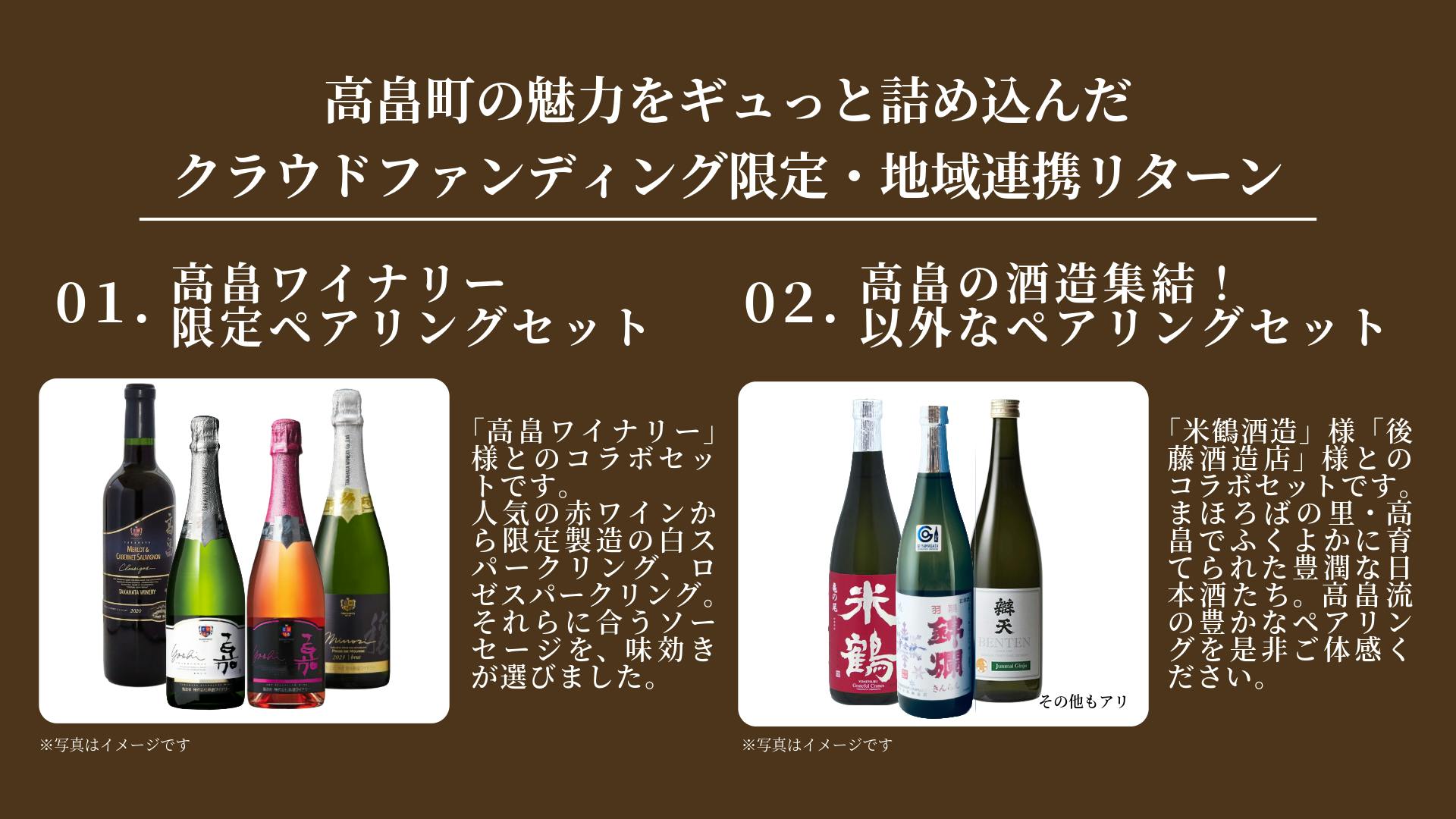 弊社の看板商品から、ドイツ国際食肉コンテスト金賞を受賞した未発売の商品、また高畠の誇る人気ワイナリー 高畠ワイナリー様とコラボしたペアリングセット、地元に愛される酒蔵3蔵様の日本酒とのコラボセット等、県外の方にも楽しんでいただけるリターンを取り揃えております!