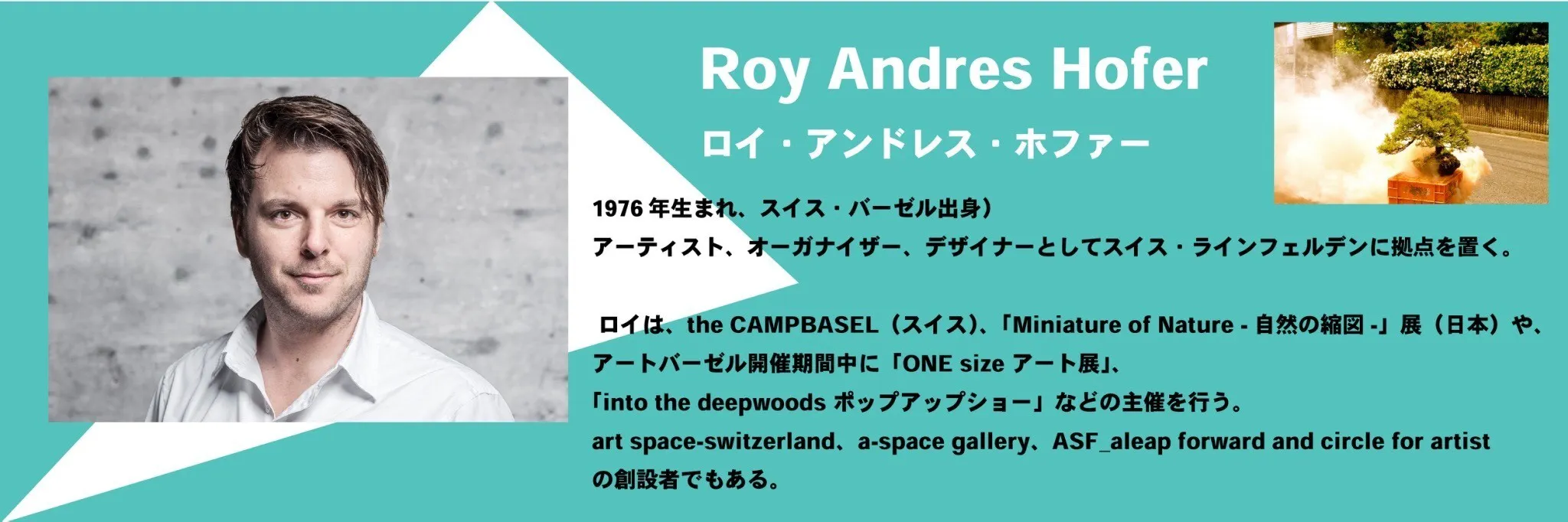 スイスを拠点に活動するアーティスト Roy Hofer が代表を務め、世界中のアーティストが集い、様々な国と地域で展示会を行っているアーティスト集団 https://www.a-spacegallery.com/