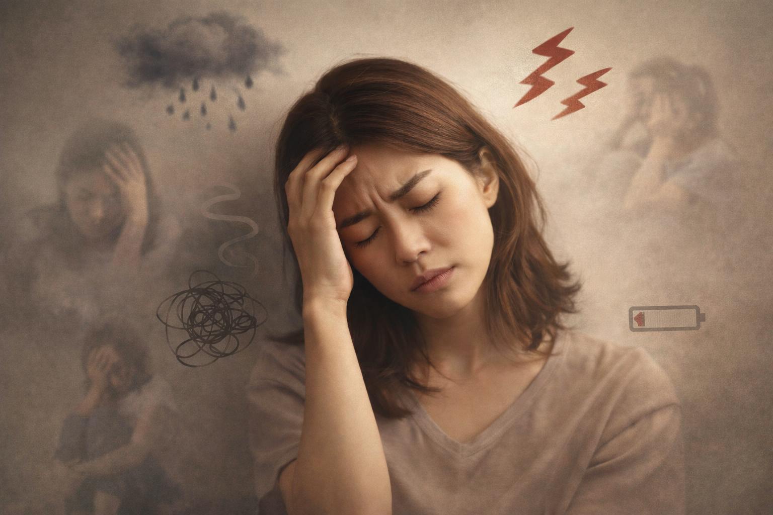 不安、イライラ、生理前のホルモンバランス、ストレス。