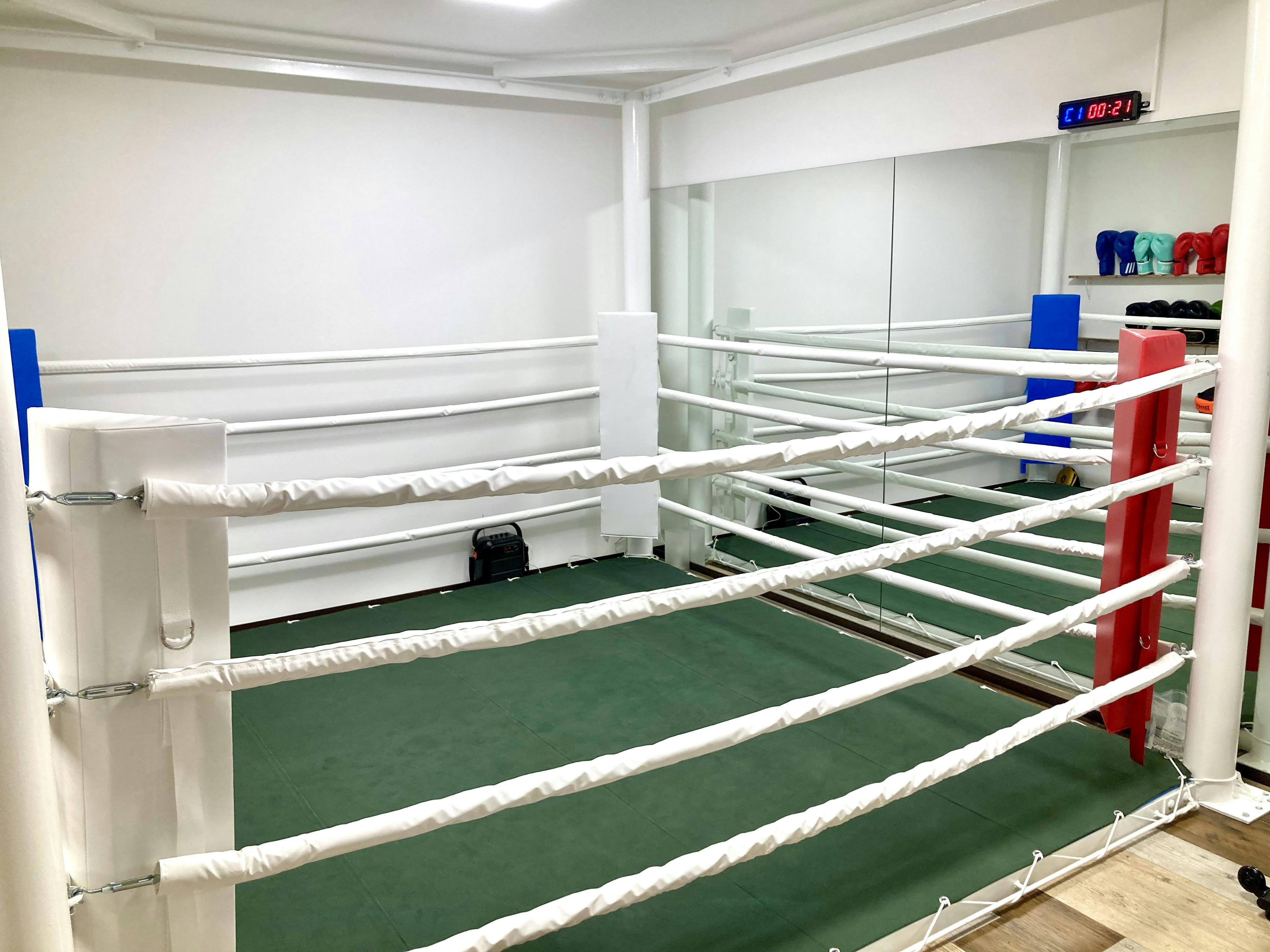 既存施設には、本格的なボクシングリングが設置されています。このリングは、2023年9月に初めてクラウドファンディングをはじめ、多くの方に支援をいただいて建てることのできたリングです。