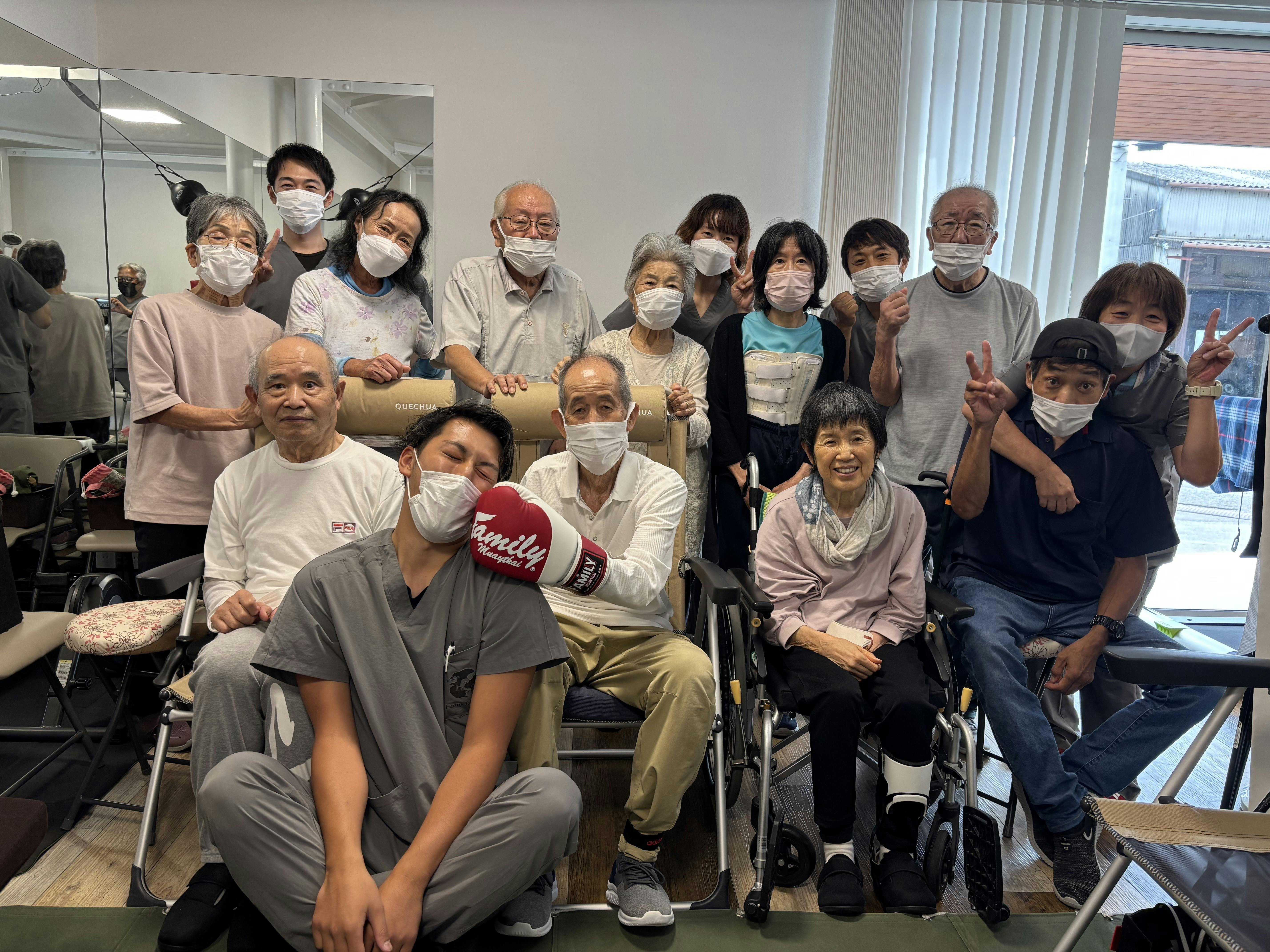 現在、当事業所のボクシングリングでも、パーキンソン病患者様がボクシンググローブを装着してミットに向かってパンチをしています。「リハビリに勝つぞ」を合言葉に、一生懸命身体を動かしてくれています。